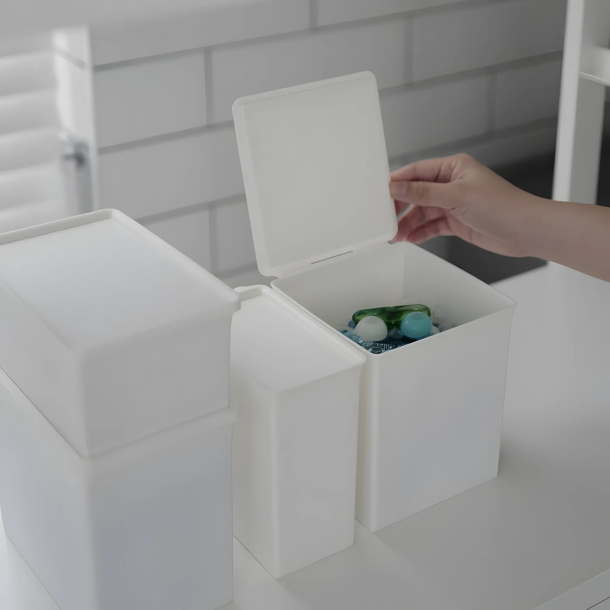 益品家の洗濯ジェルボール密封容器 - 洗剤収納ボックス、石鹸ケース、ナノ重曹小箱、便利なフリップトップデザインで場所を取らず、洗濯をもっとスマートに!