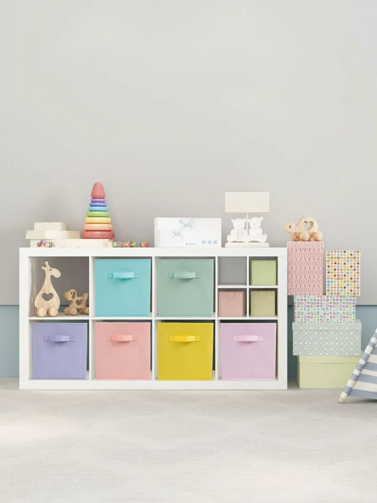 33*33*33cm 正方形おもちゃ収納ボックス - カラフルな格子デザインの引き出し式収納箱、書棚整理に最適!おしゃれで機能的な収納ソリューション!