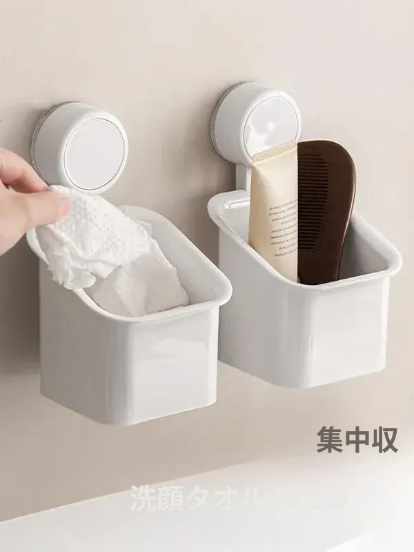 吸盤付き洗顔タオル収納ボックス - 使い捨てティッシュ回収バスケット!壁掛け収納バケットで、スペースを有効活用し、キッチンやバスルームをスッキリ整理。水切り機能付きで、清潔感もアップ!