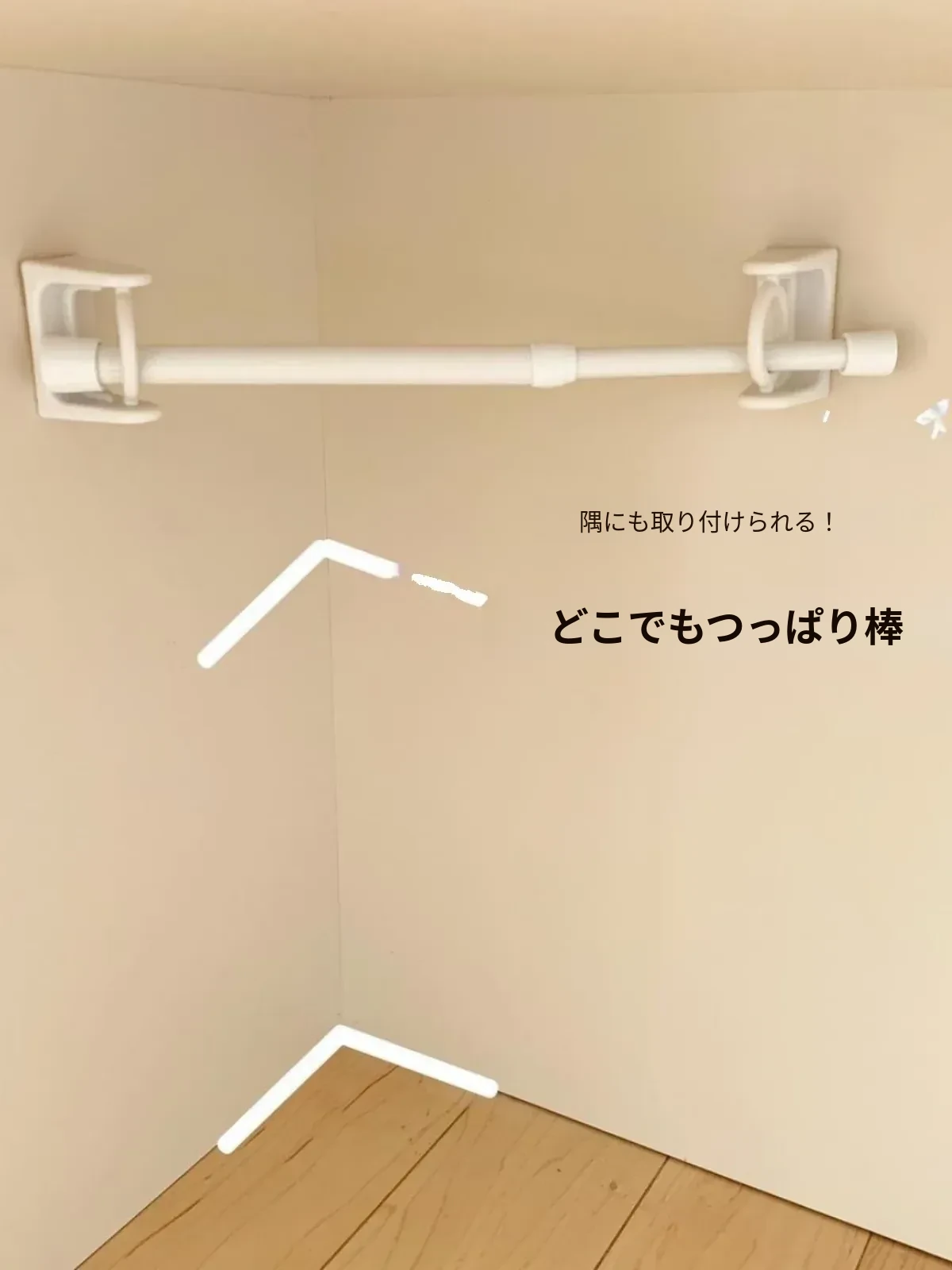 益品家の伸縮式ロッドは回転フック付き!便利な固定器で、ロッドをしっかり固定しながら、角度を自由に調整できます。お部屋の隅々まで有効活用できるアイテムです!