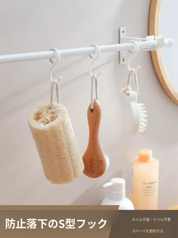 穴あけ不要!キッチンやバスルームに最適な柔らかい先端のS字型伸縮ロッドフック。クローゼットや多機能に使える、落下防止フックで収納力アップ!