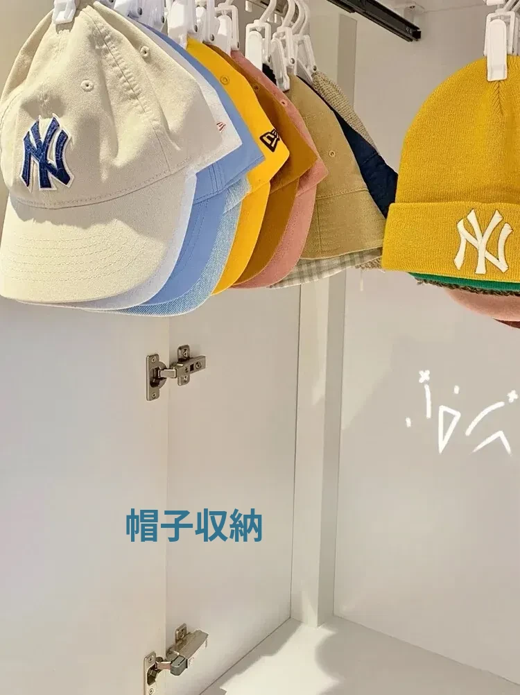 帽子収納に最適!穴を開けずに簡単取り付けできる小型フック付き整理ラック - 衣類収納の救世主、伸縮式バーと組み合わせてスペースを有効活用!