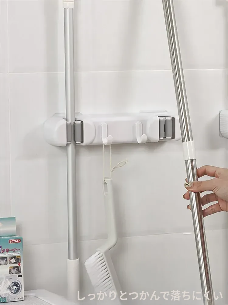 壁掛けモップクリップ - 取り付け不要でトイレやバスルームの壁に強力固定!多機能で掃除道具をスッキリ収納、スペースを有効活用する優れたアイテムです。