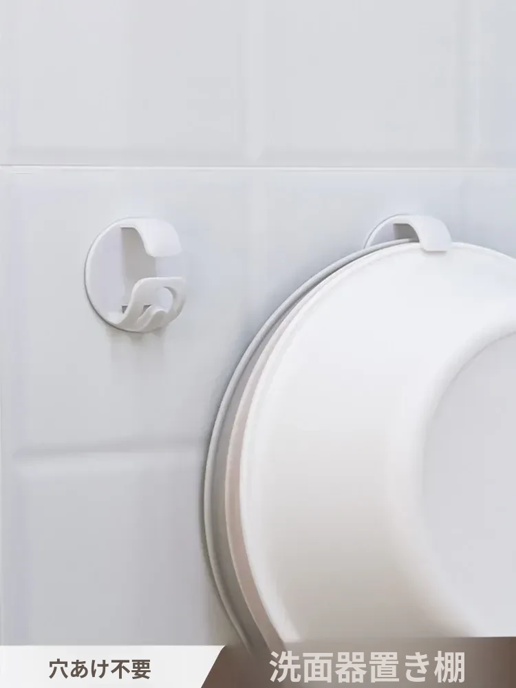 アイデア満載!壁掛け洗面器フック収納ラック - 穴を開けずに取り付け可能!清潔感溢れるバスルームに最適な洗面器・浴槽用の便利な収納アイテム。整理整頓を簡単に!