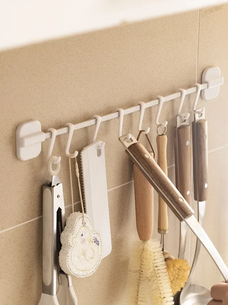 隙間にぴったり!伸縮式穴あけ不要キッチン壁掛けフック - 創造的な家庭用サイド粘着フック、便利な小物をすっきり収納できる多機能フック!