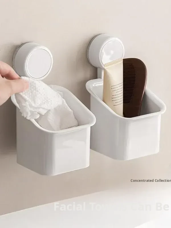 Suction Cup Face Towel Holder - Wall-Mounted Storage Basket for Used Tissues and Drainage - Stylish Organizer for Efficient Space Saving