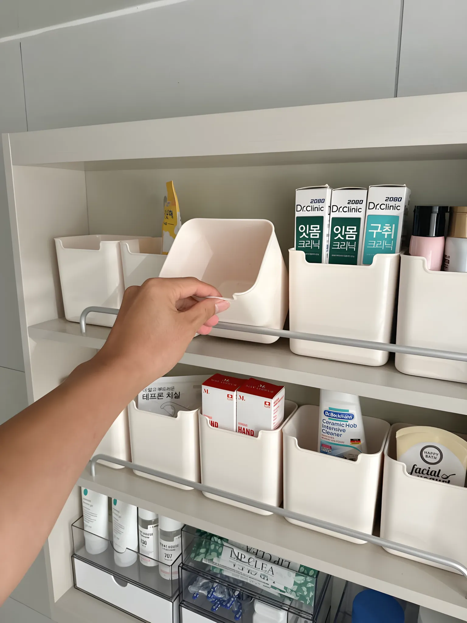 Pull-Out Storage Box with Adhesive Sliding Track - No Drilling Required, Easy Installation, Durable Plastic Organizer for Convenient Access and Efficient Space Utilization