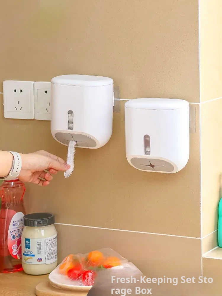 Wall-Mounted Dispenser for Disposable Food Wrap - No Drill Necessary! Keep Your Kitchen Organized with This Convenient Storage Box for Plastic Bags and Filters. Perfect for Hassle-Free Access and Clutter-Free Cooking!