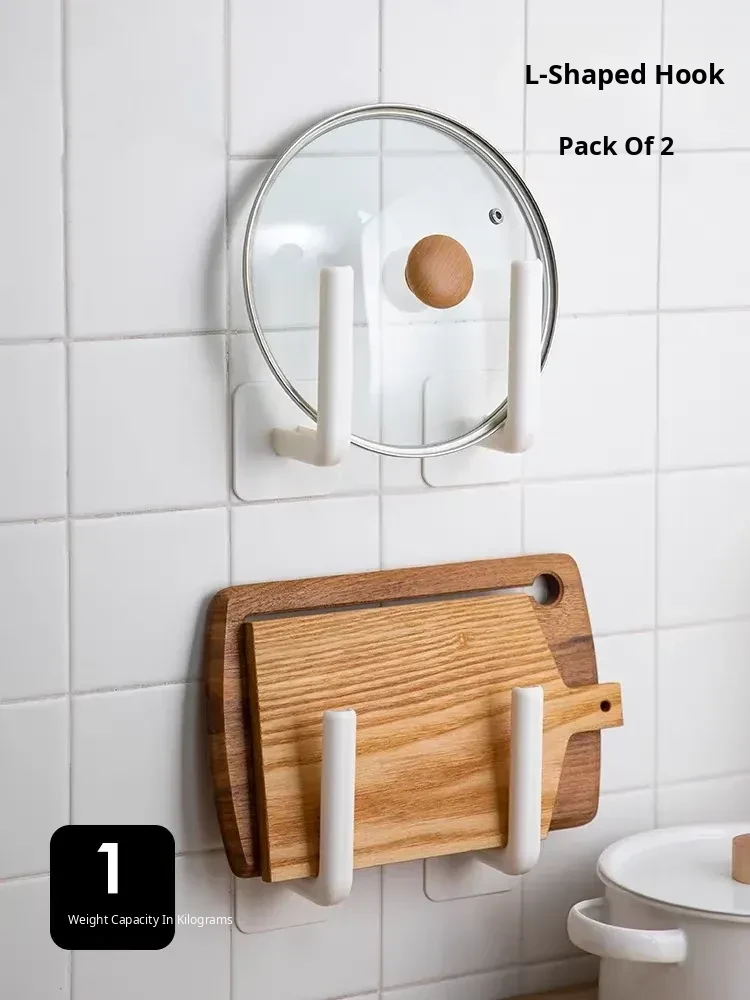 Multi-Functional L-Shaped Hook - No Drill Hanging Rack for Cutting Boards, Pot Lids, Kitchen Storage Organizer, Towel Holder, and Paper Towel Rack. Perfect for Maximizing Space in Your Kitchen!