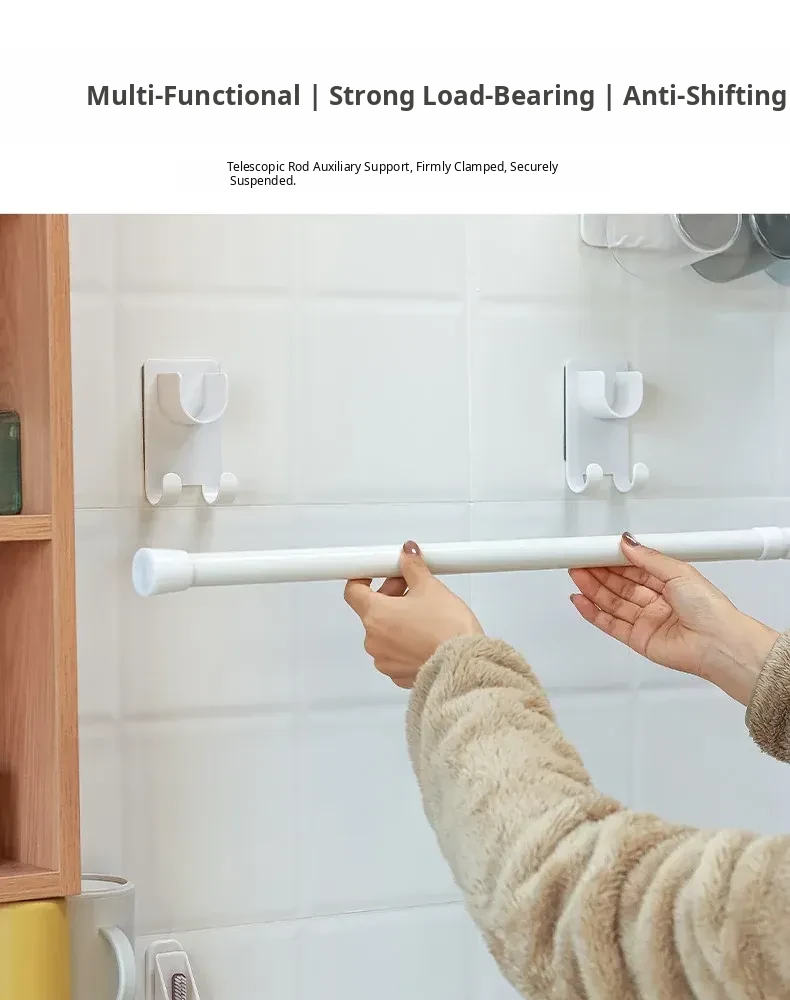 Adhesive No-Drill Curtain Rod Bracket - Adjustable Support Hook for Door Curtains, Easy Installation, Durable and Stylish Design, Perfect for Any Room.