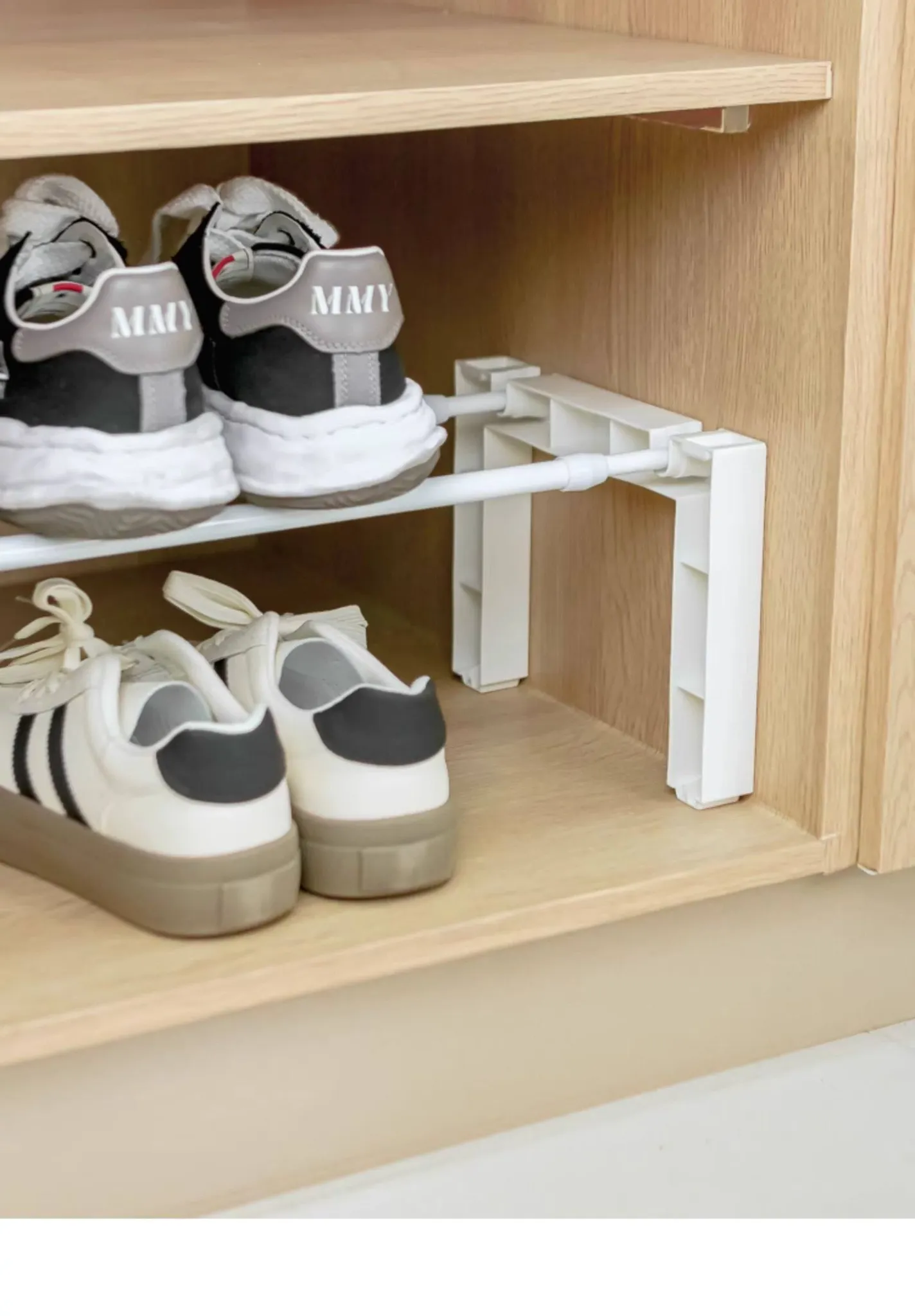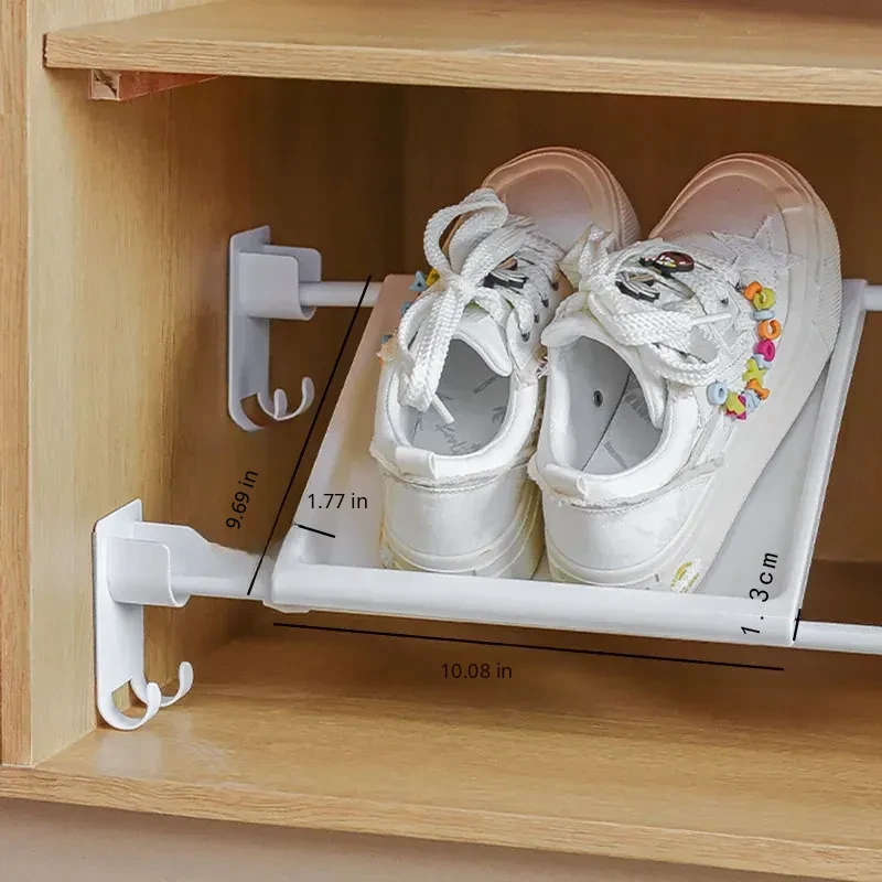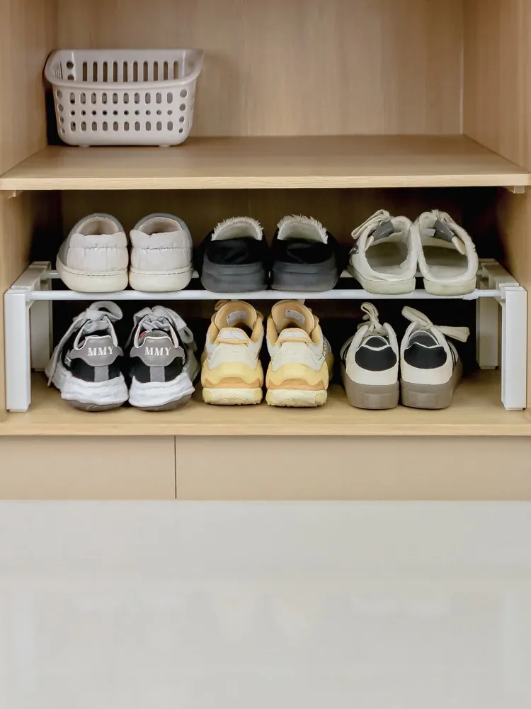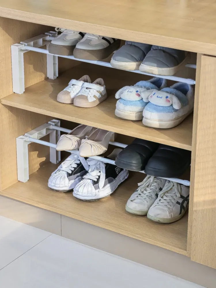 Adjustable Shoe Rack with Telescopic Rod - Space-Saving Organizer for Home and Dormitory, Perfect for Storing Shoes in Cabinets!