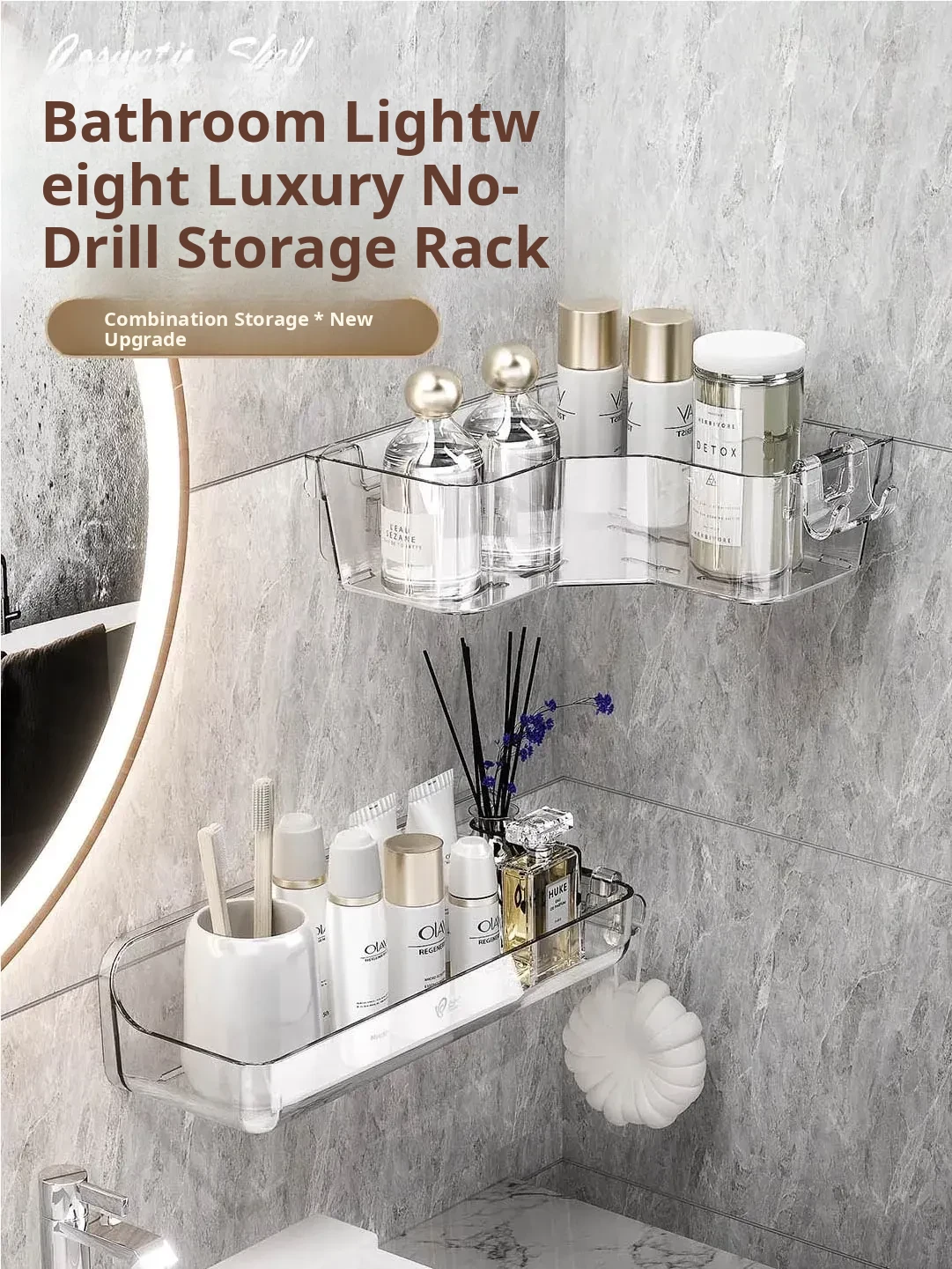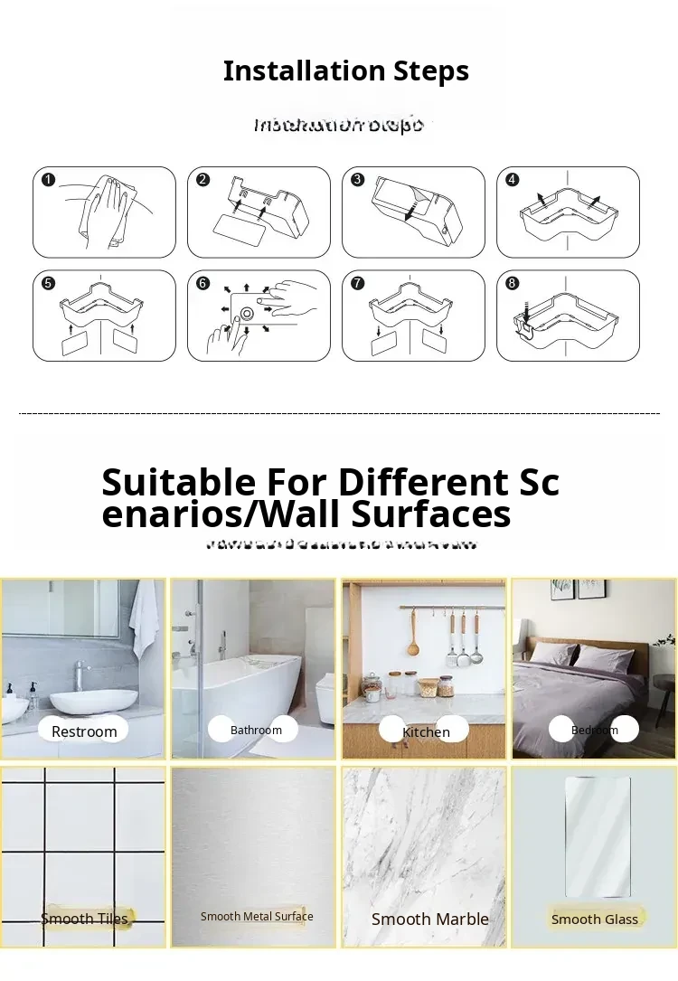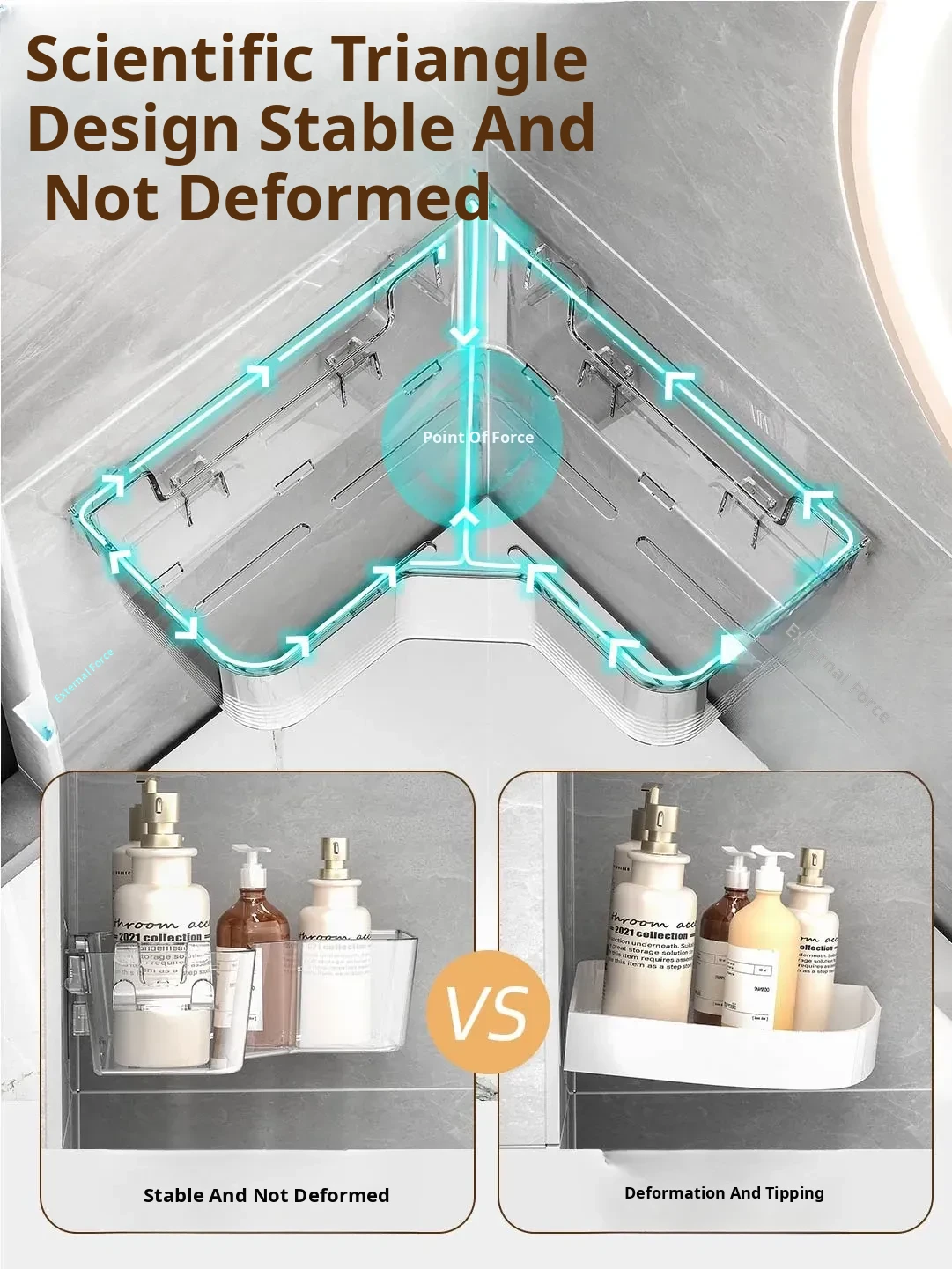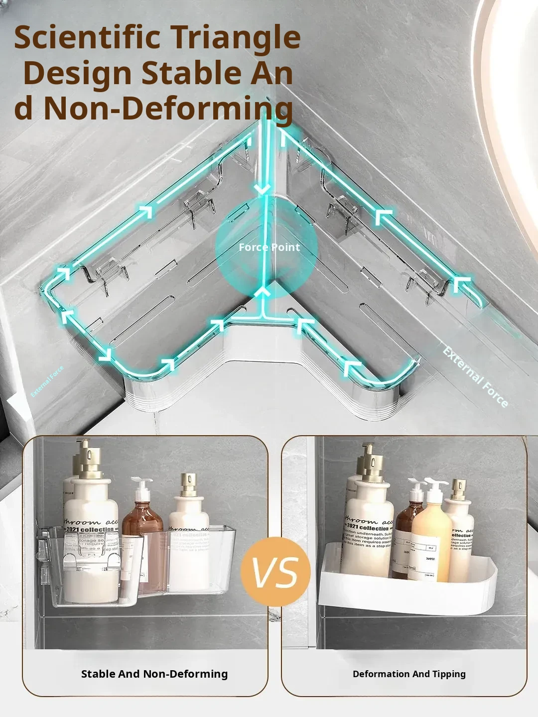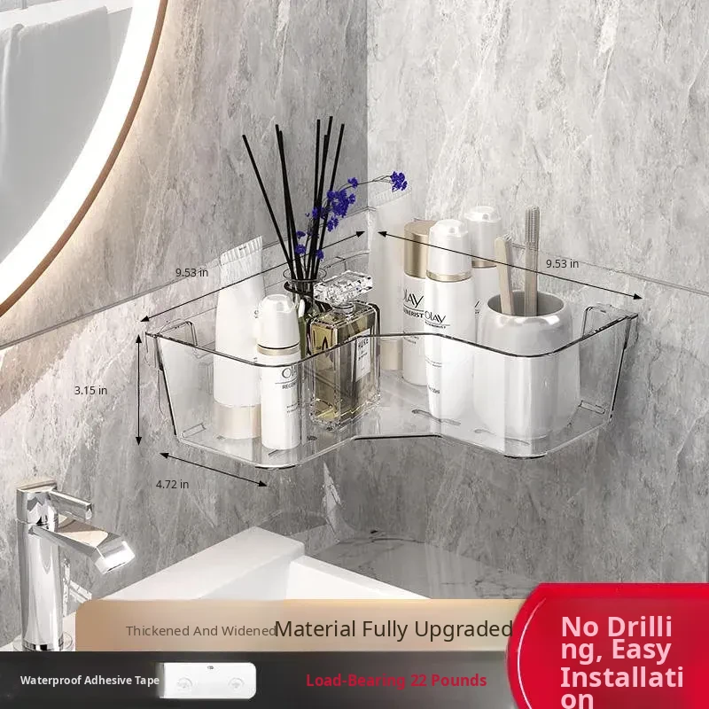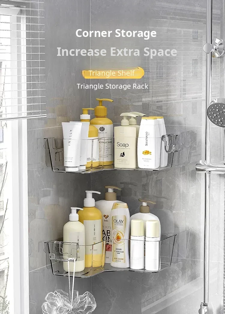 Corner Bathroom Shelf - Wall-Mounted Triangle Organizer for Cosmetics, No Drilling Required, Perfect for Space-Saving Storage in Your Restroom