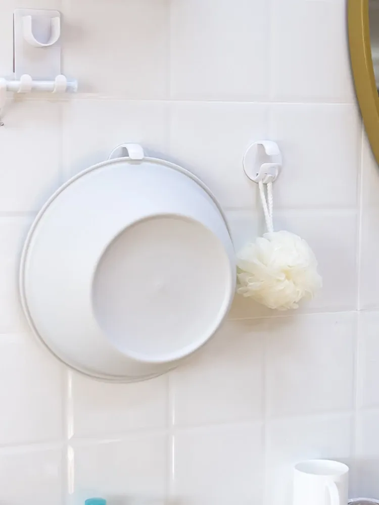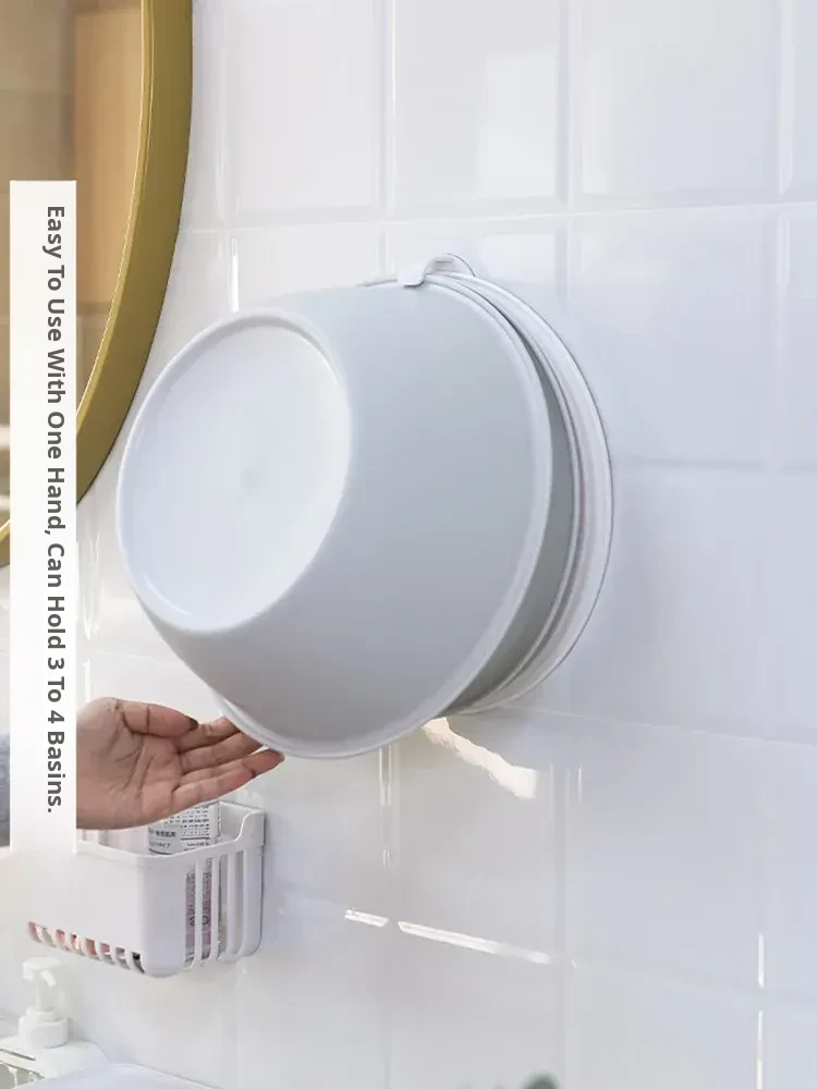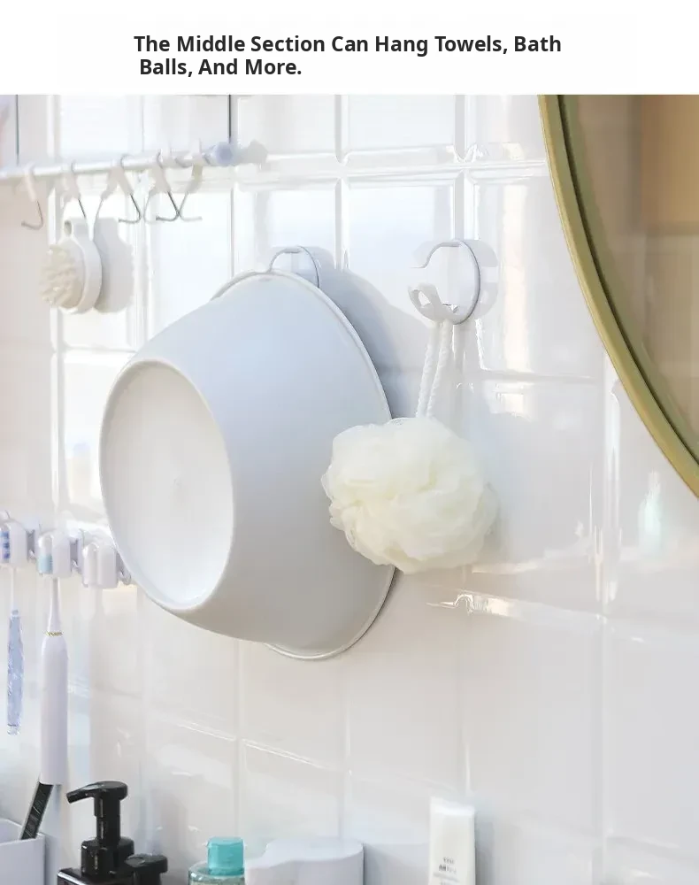 Creative Wall-Mounted Basin Hook Organizer - No Drill Needed, Space-Saving Bathroom Storage Rack for Washbasin and Bathtub Essentials