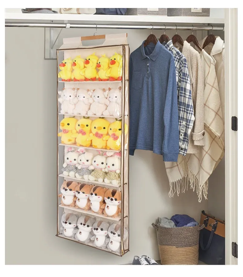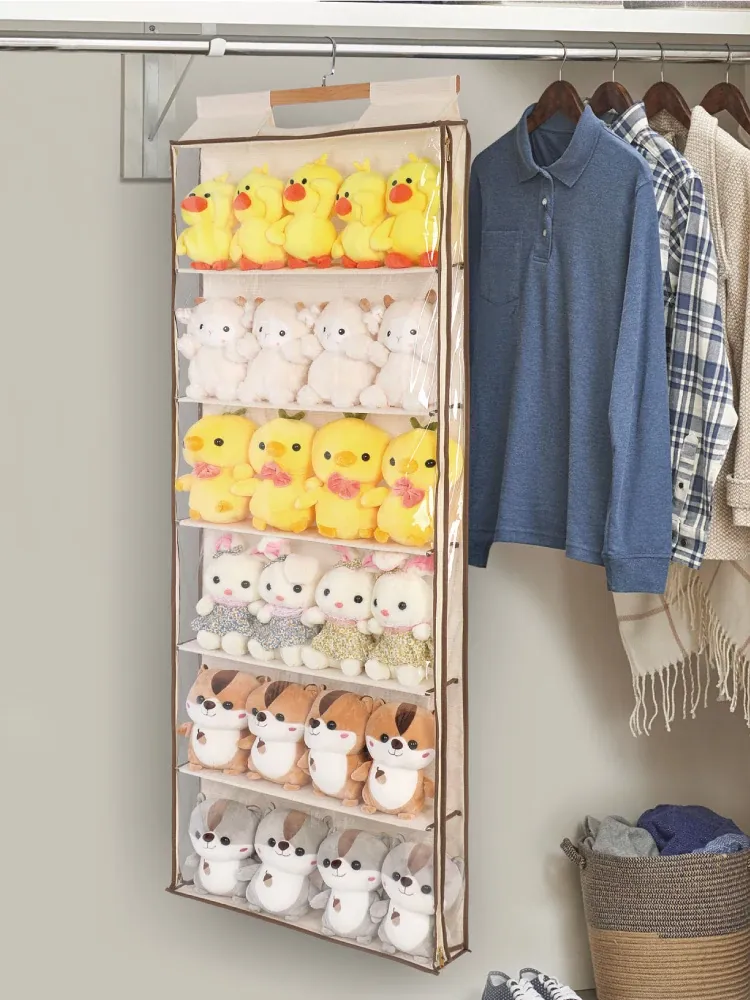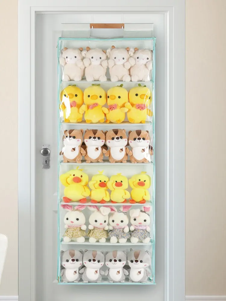 "Door-Mounted Star Plush Doll Organizer - Wall-Hanging Storage Bag for Stuffed Toys and Doll Display Rack - Perfect for Neat and Stylish Kids' Room!"