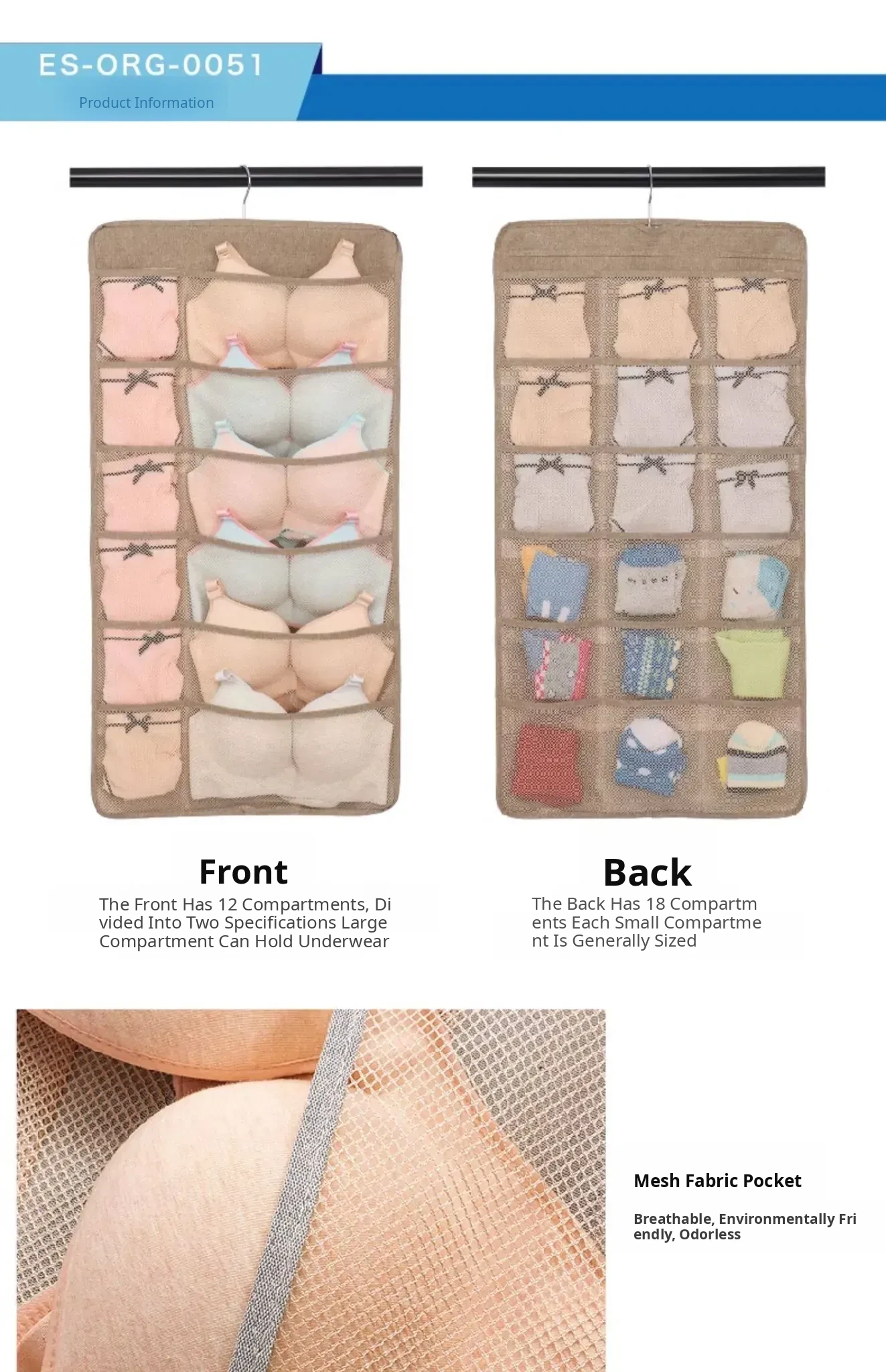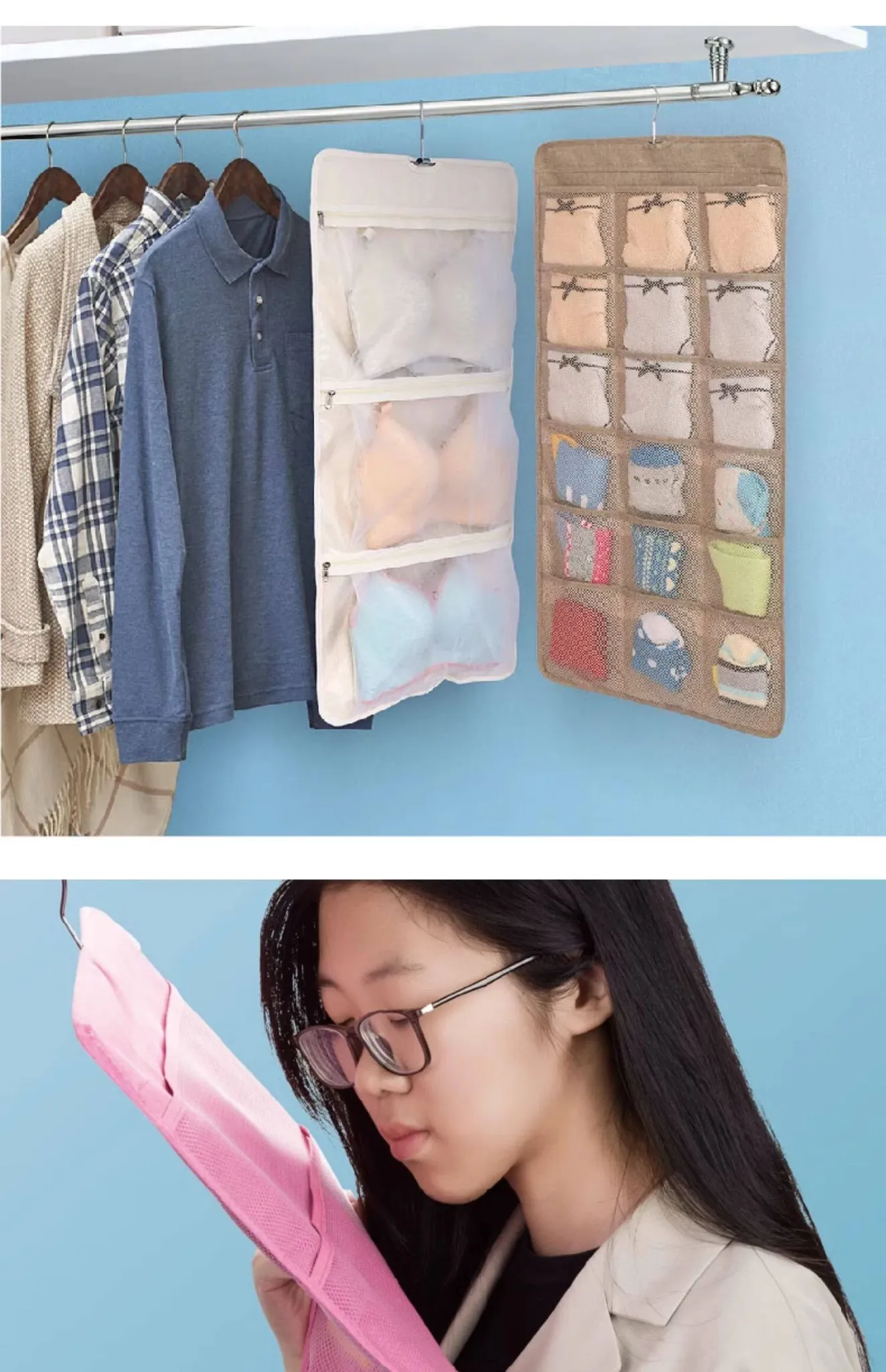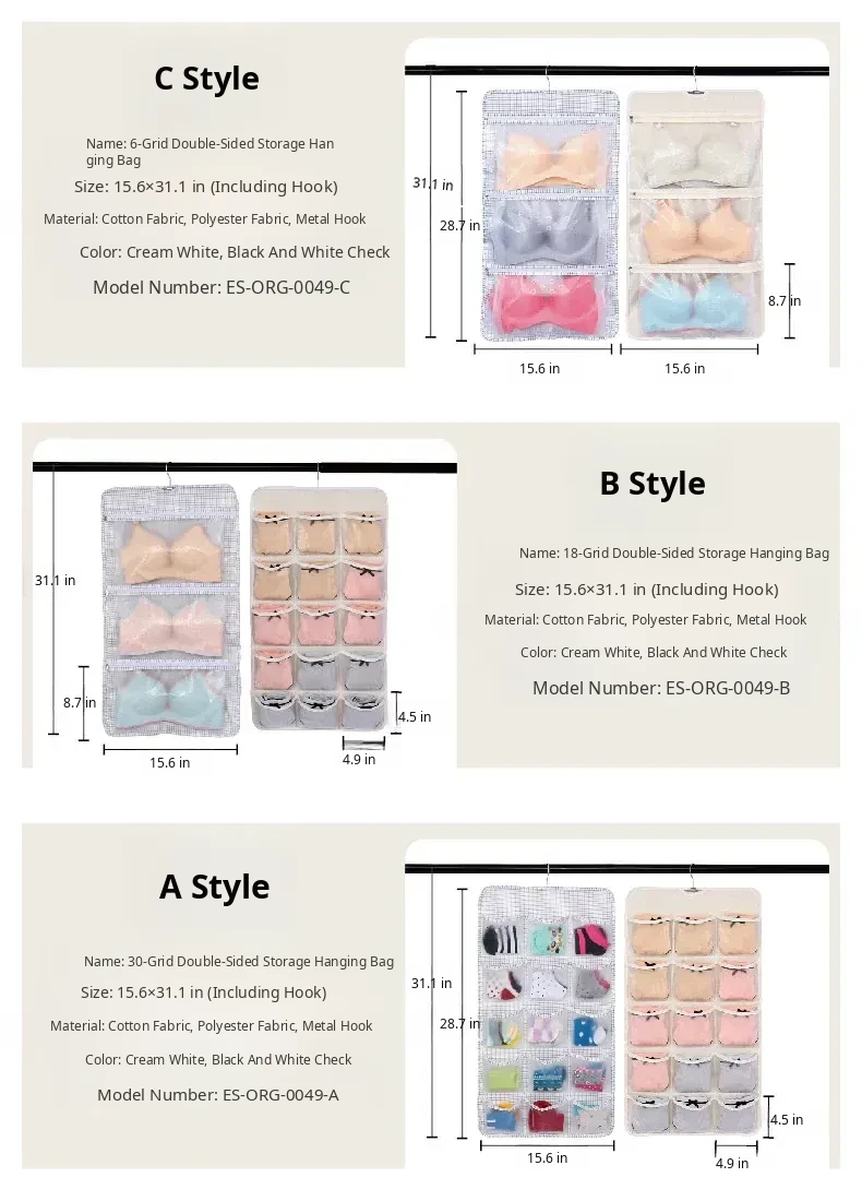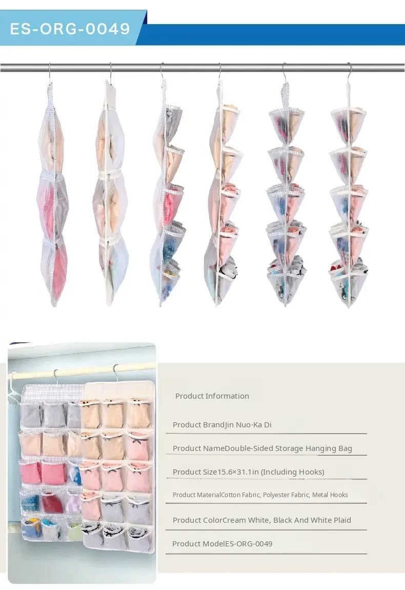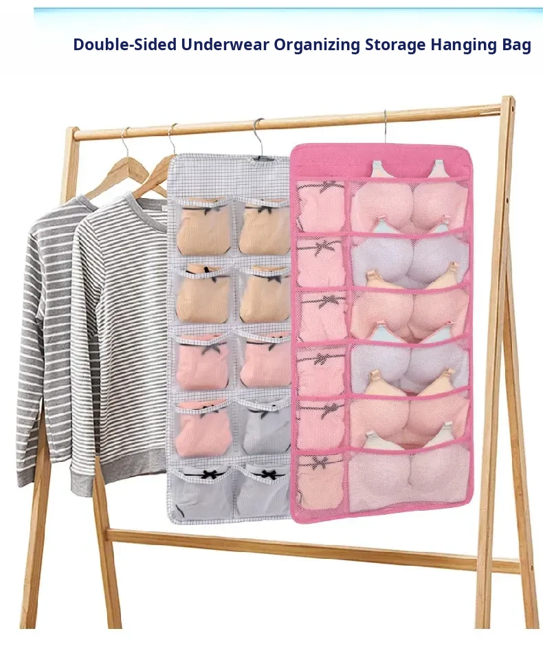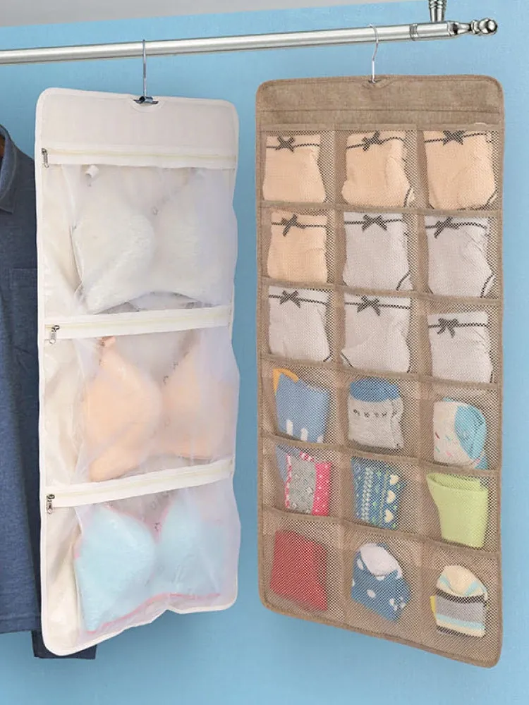 Dual-Sided Dust-Proof Hanging Storage Bag for Socks and Underwear – Wall-Mounted Organizer for Neat and Convenient Clothing Storage