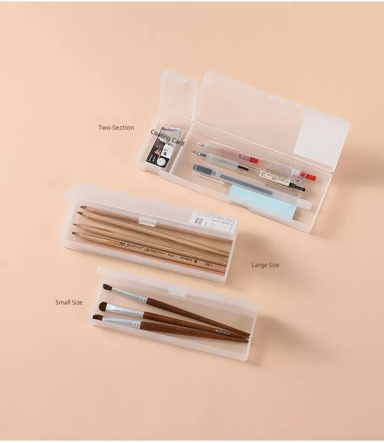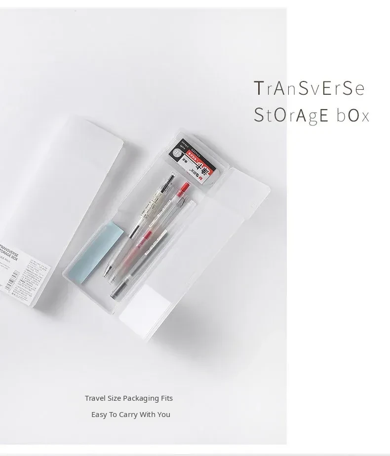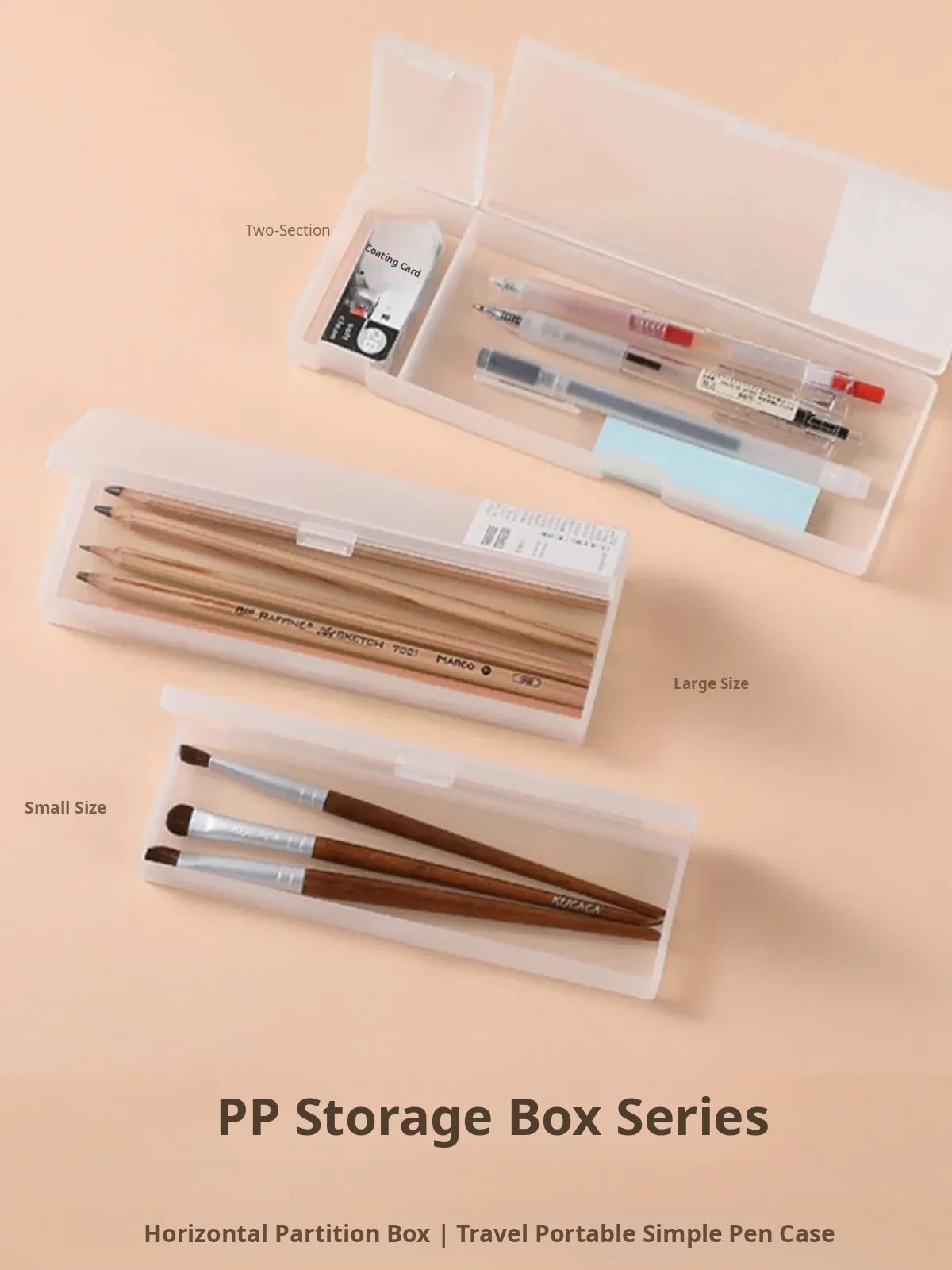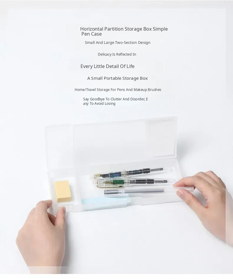 Horizontal Plastic Pencil Case - Versatile Desk Organizer for Stationery, Makeup Brushes, Eyebrow Pencils, and Travel Essentials - Perfect Portable Storage Solution for Students!