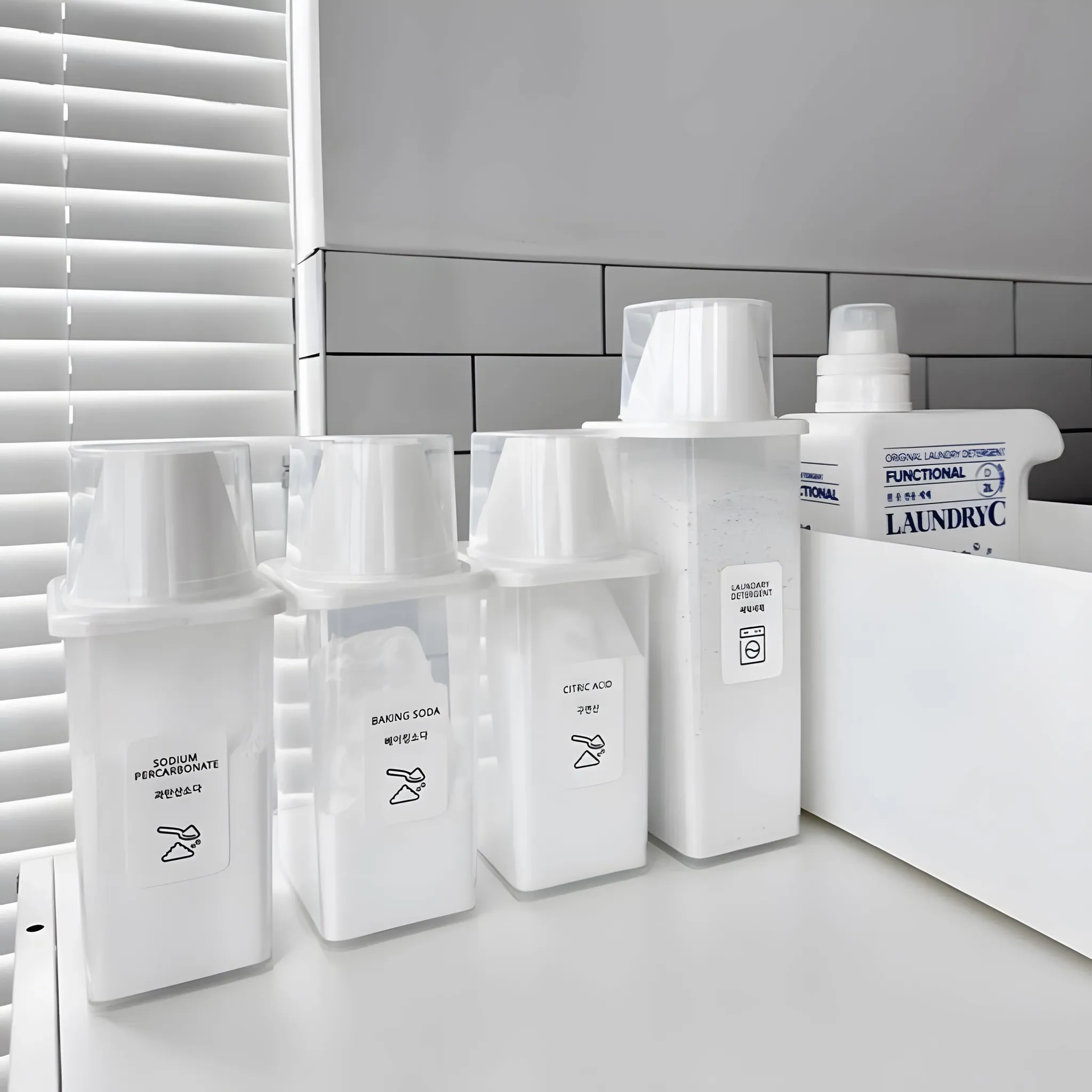 Ins Laundry Powder Storage Box with Measuring Cap - Lemon Acid Pod Container, Sealed and Convenient for Powder Storage, Perfect for Organized Laundry Room