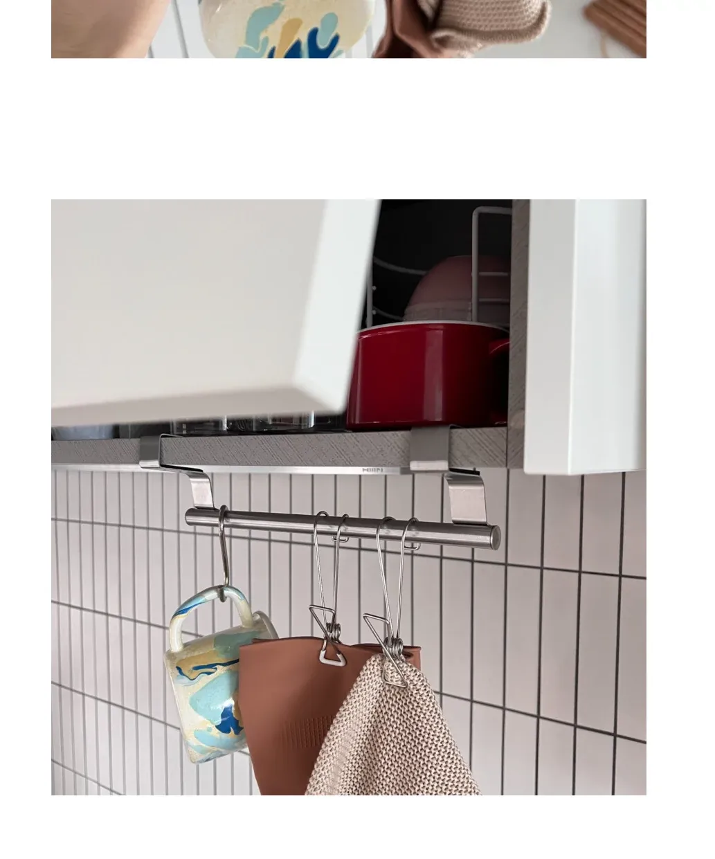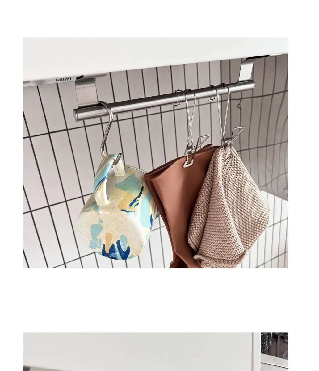 Ins Style No-Drill Iron Cloth Rack - Cabinet Door Hooks for Hanging, Space-Saving Organizer & Towel Bar, Perfect for Kitchen and Bathroom Use