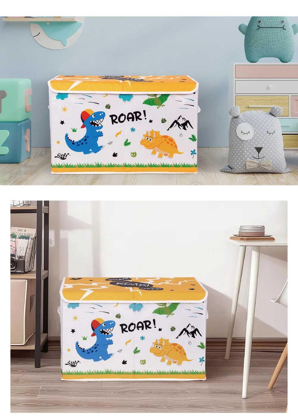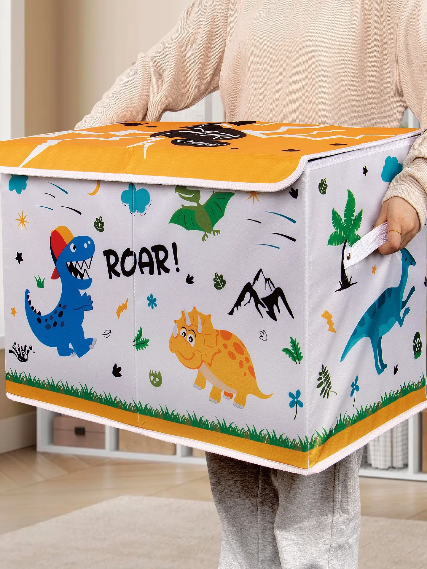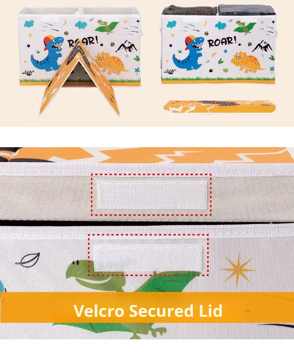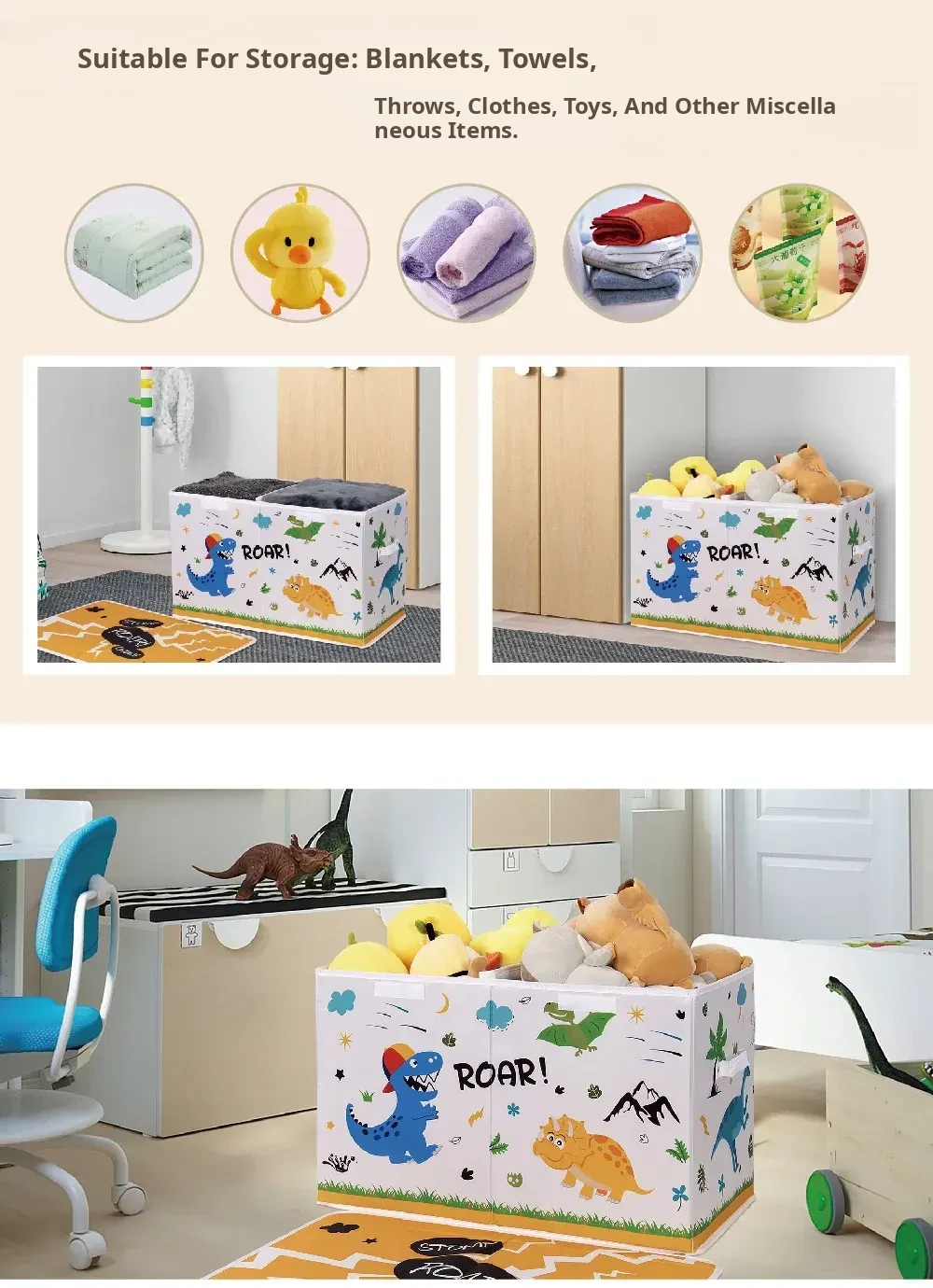 Large Capacity Foldable Fabric Storage Box for Kids - Cartoon Dinosaur Design, Perfect for Organizing Toys, Clothes, and Bedding at Home