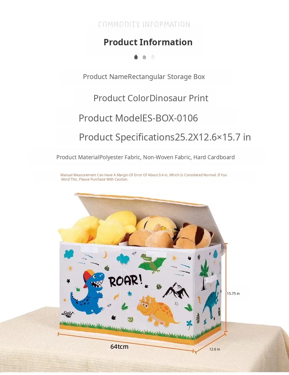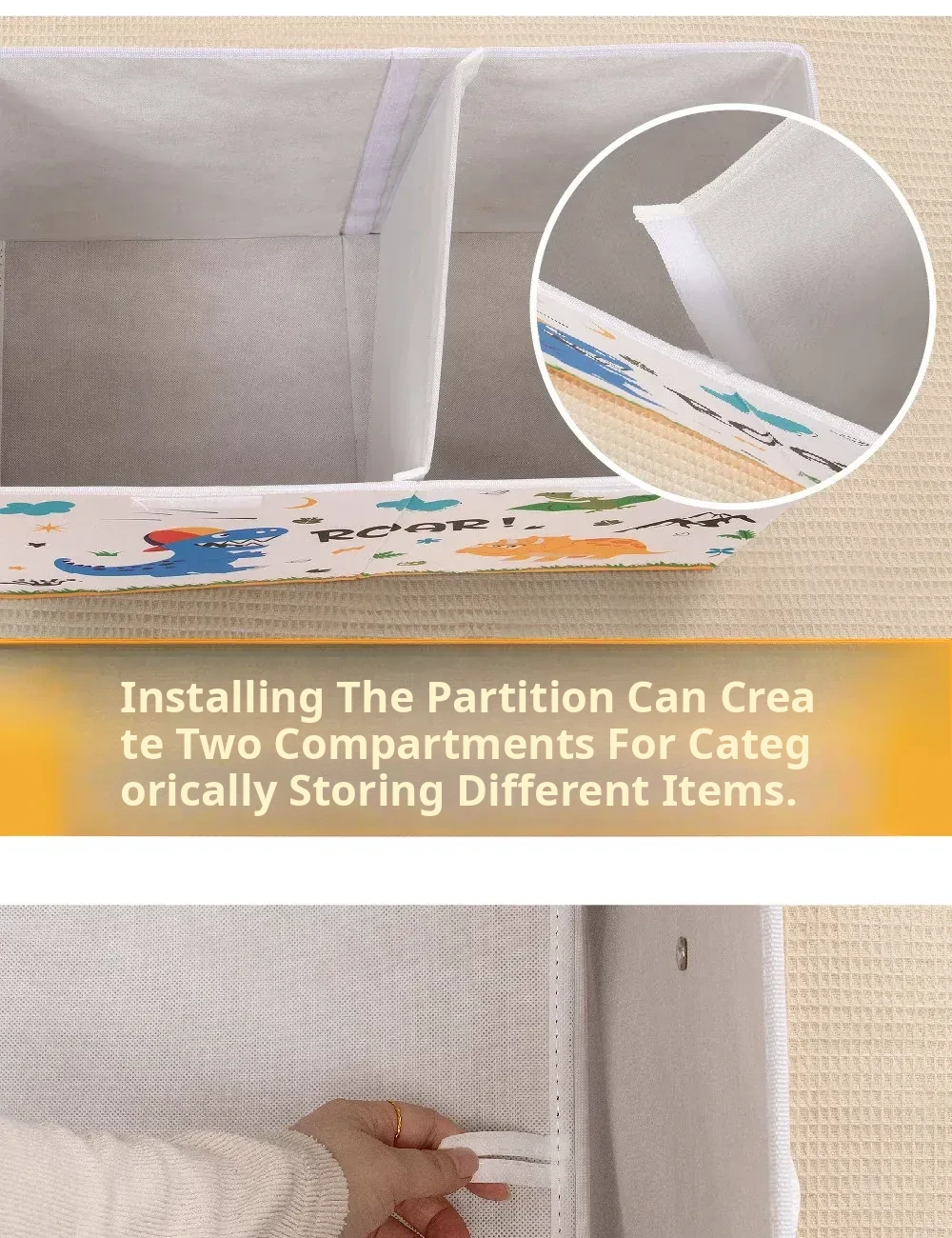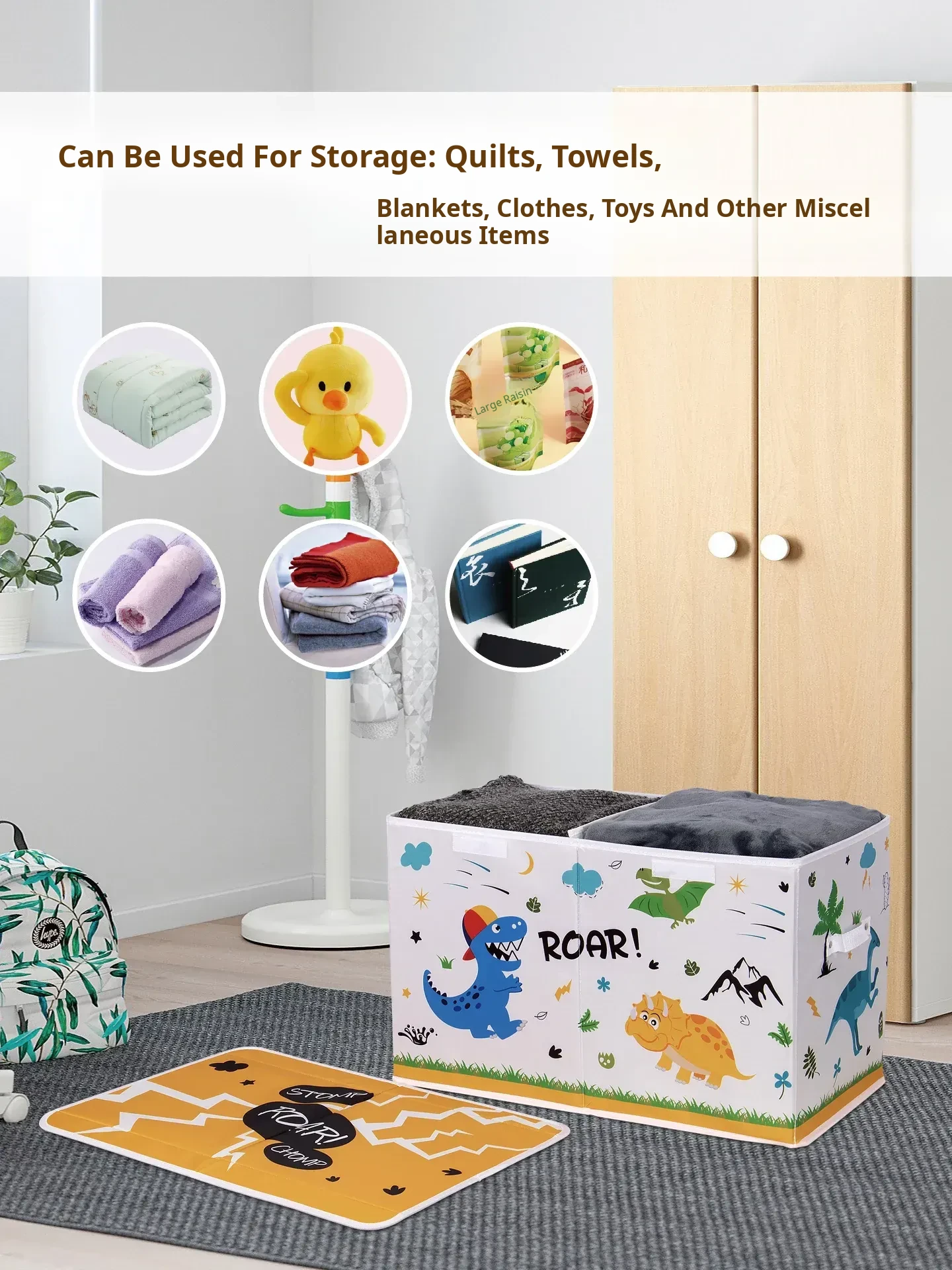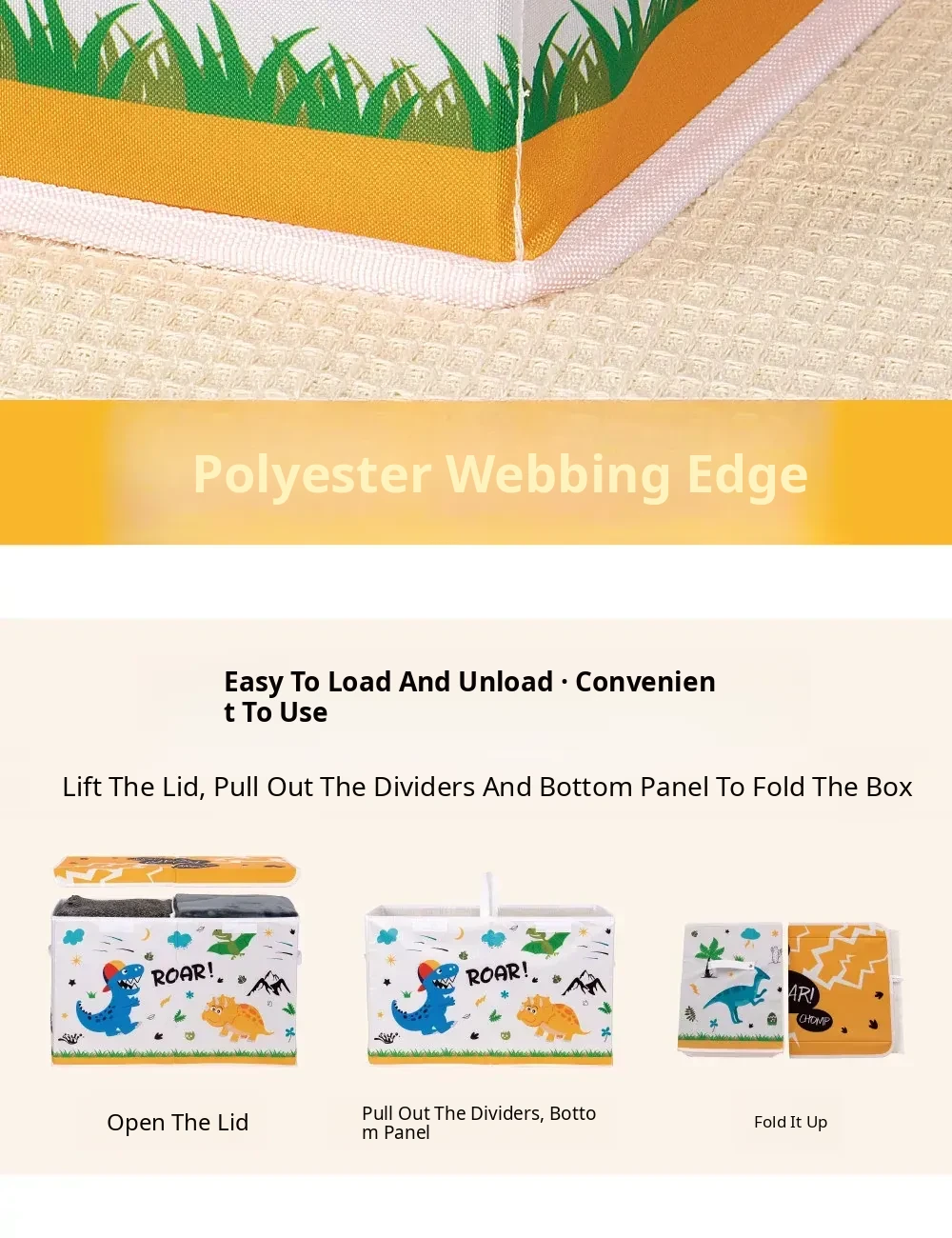 Large Capacity Foldable Fabric Storage Box for Kids - Cartoon Dinosaur Design, Perfect for Organizing Toys, Clothes, and Bedding at Home