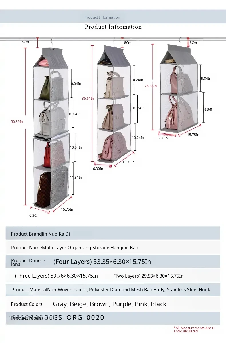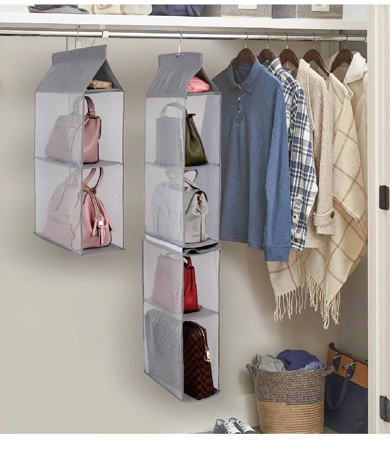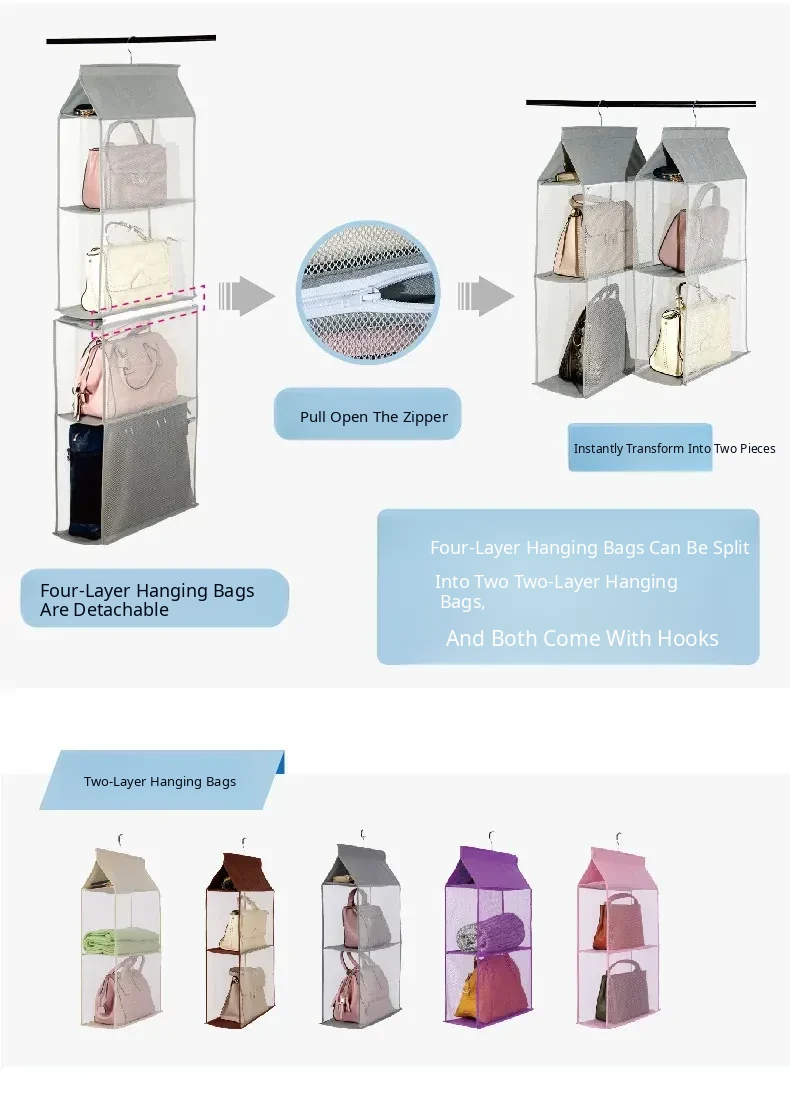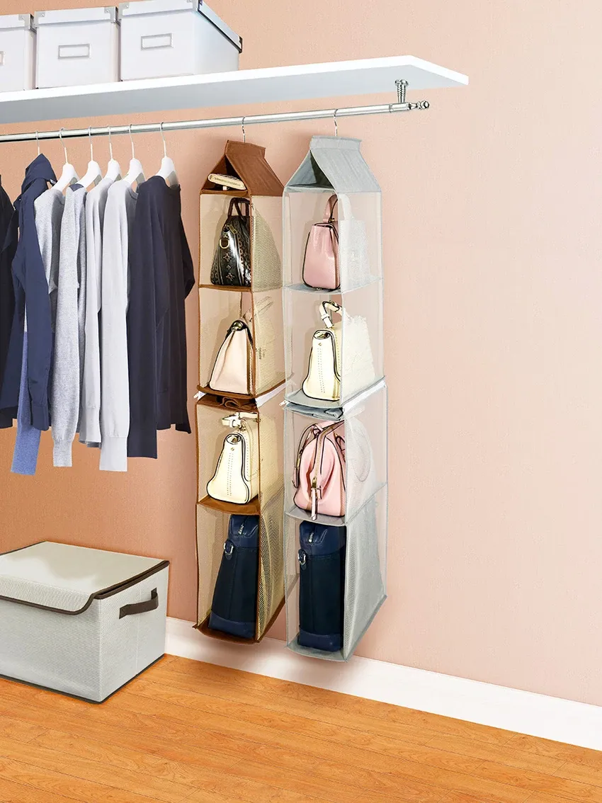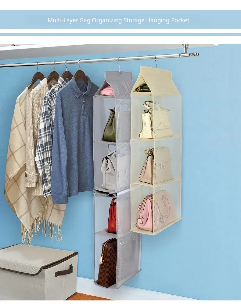 Multifunctional Hanging Bag Organizer for Closet - Space-Saving Wall-Mounted Storage Rack with Multiple Fabric Pockets for Dorms and Home Use