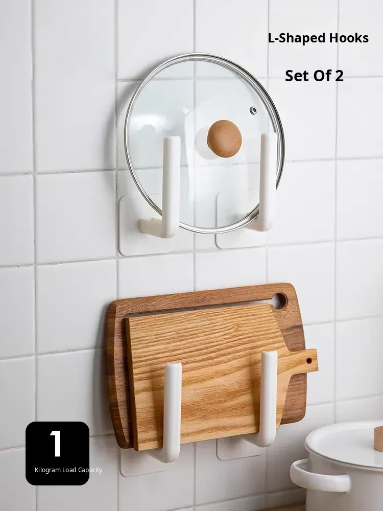 Multi-Functional L-Shaped Hook - No Drill Hanging Rack for Cutting Boards, Pot Lids, Kitchen Storage Organizer, Towel Holder, and Paper Towel Rack. Perfect for Maximizing Space in Your Kitchen!