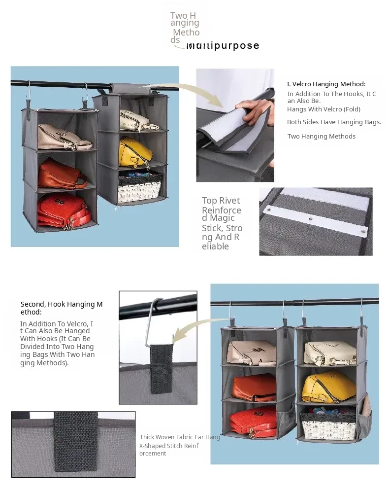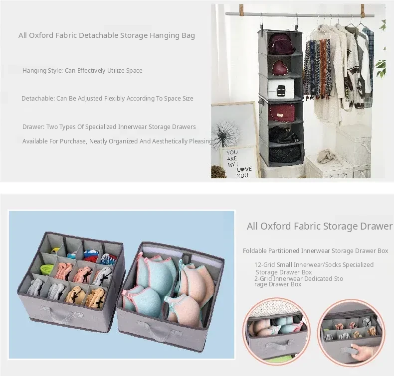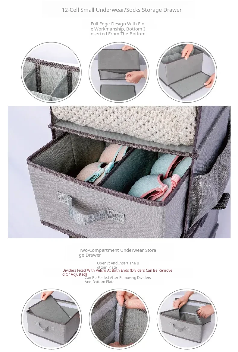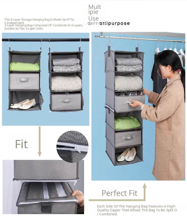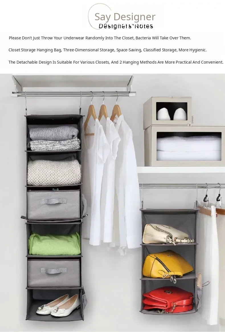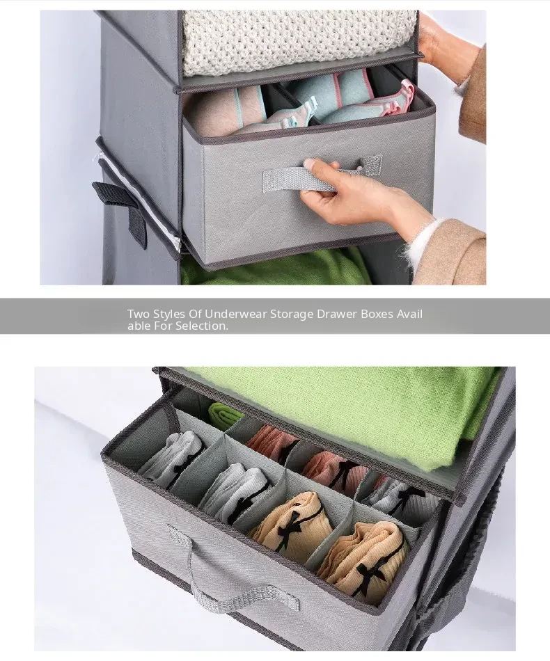 Multi-Layer Hanging Storage Bag for Closet - Drawer-Style Organizers for Home - Space-Saving Hanging Clothes Storage Solution