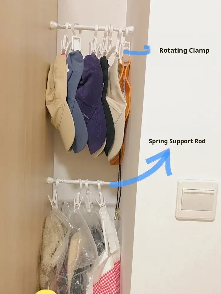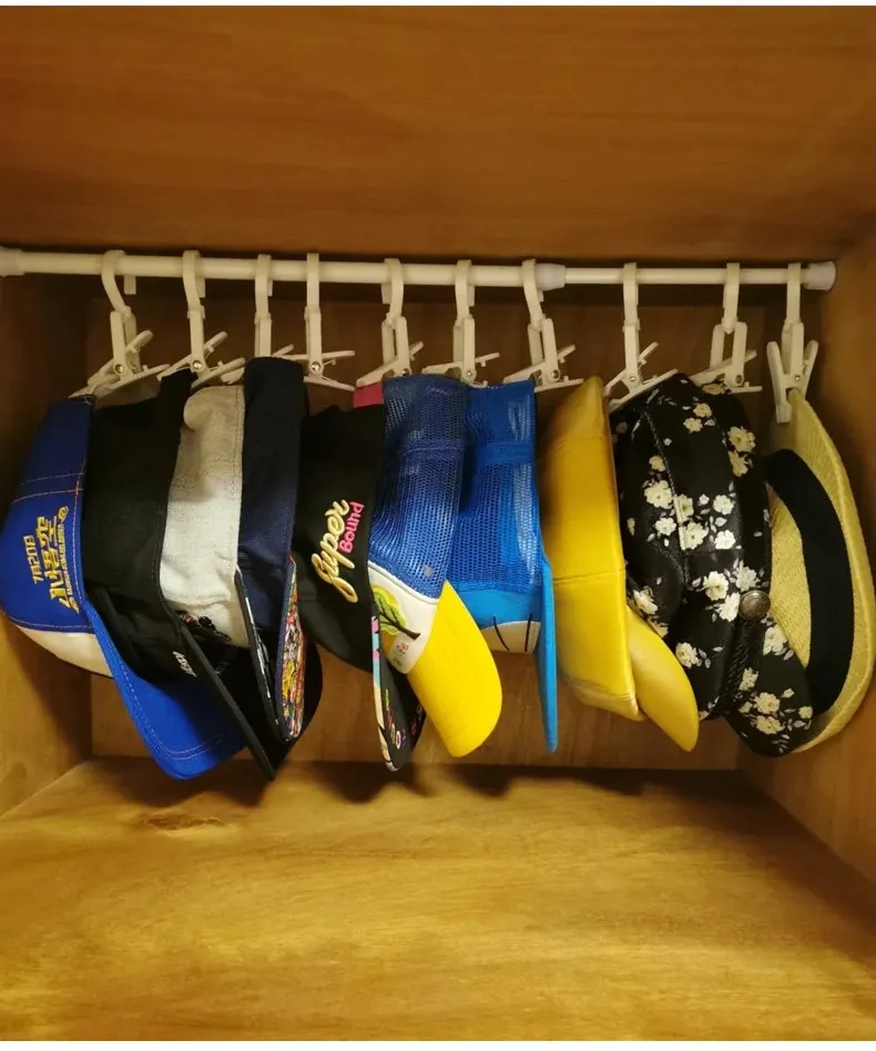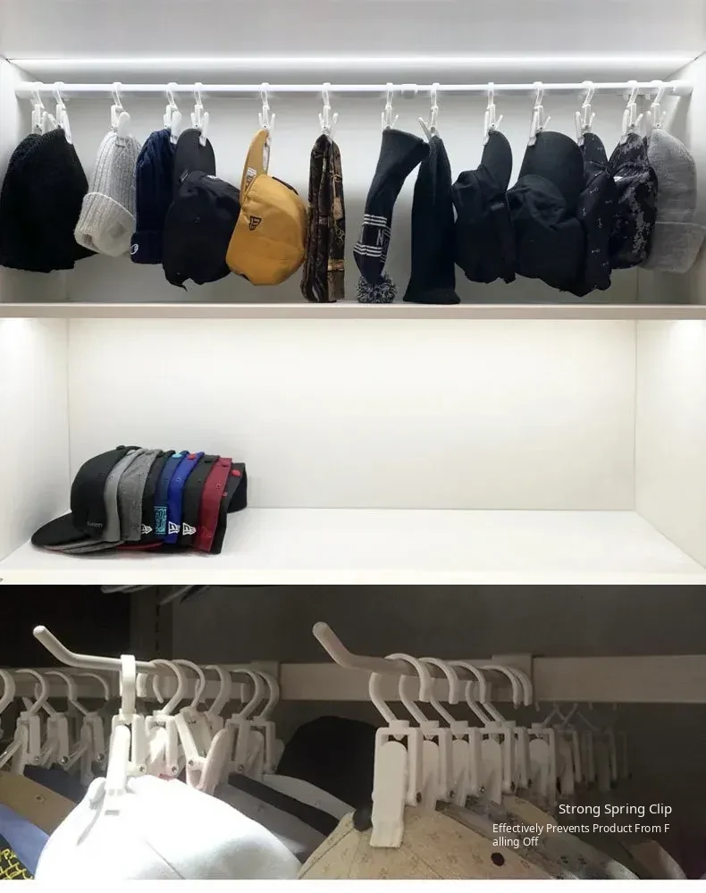 No-Drill Hat Clip Organizer Rack - Space-Saving Small Hooks for Closet, Adjustable Rod and Storage Shelf Combo, Perfect for Neat and Tidy Spaces!