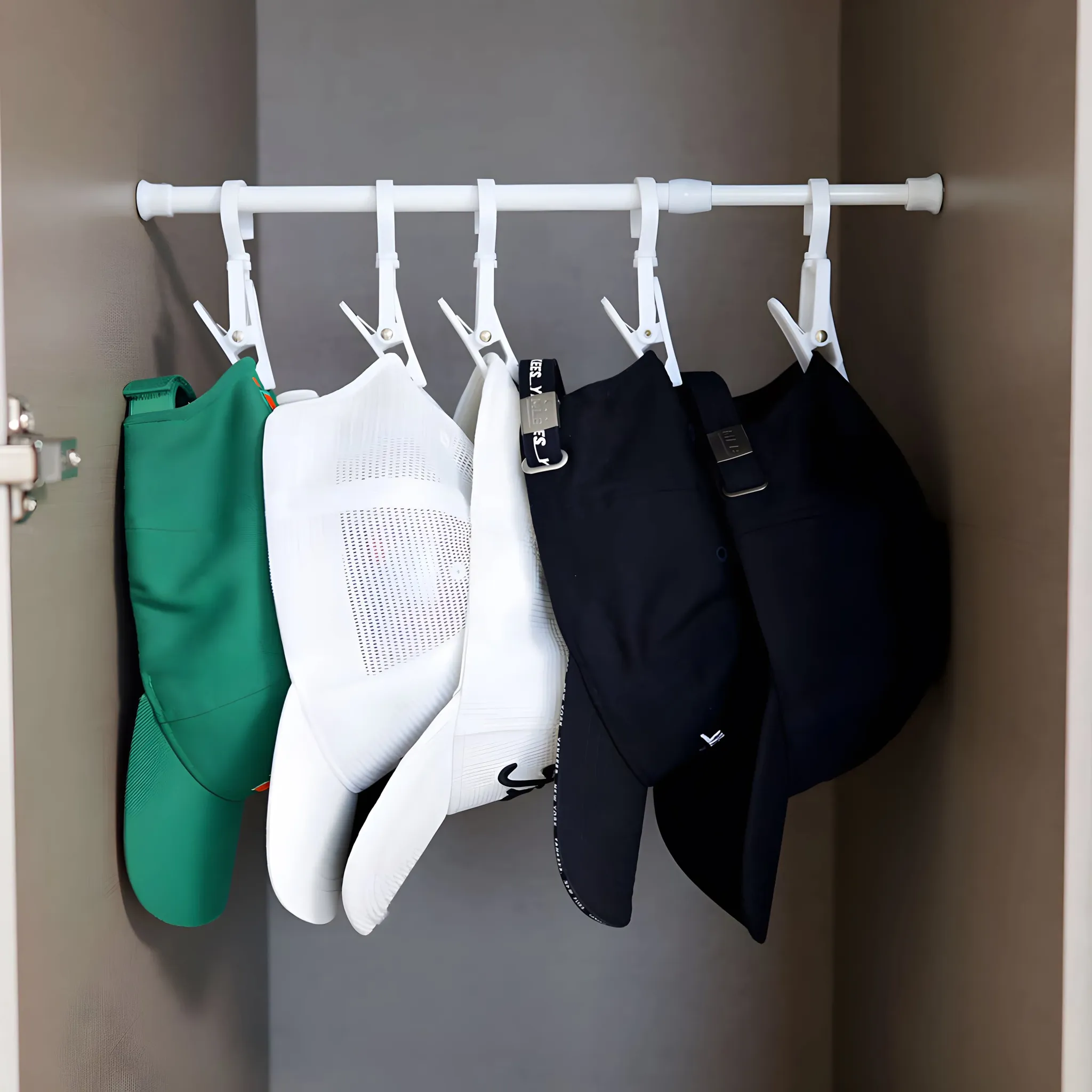 No-Drill Hat Clip Organizer Rack - Versatile Closet Rod with Hooks for Easy Storage and Stylish Organization Solution for Your Wardrobe