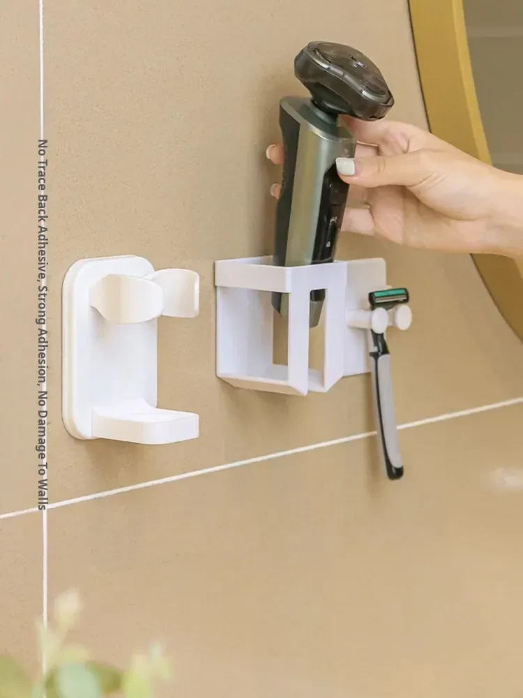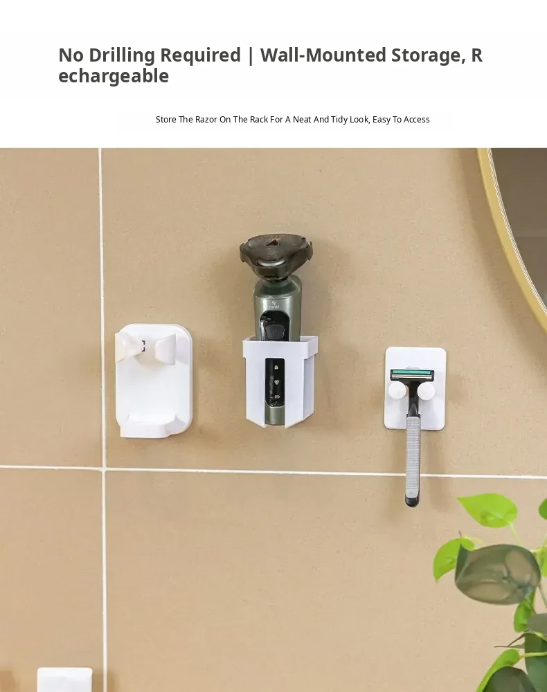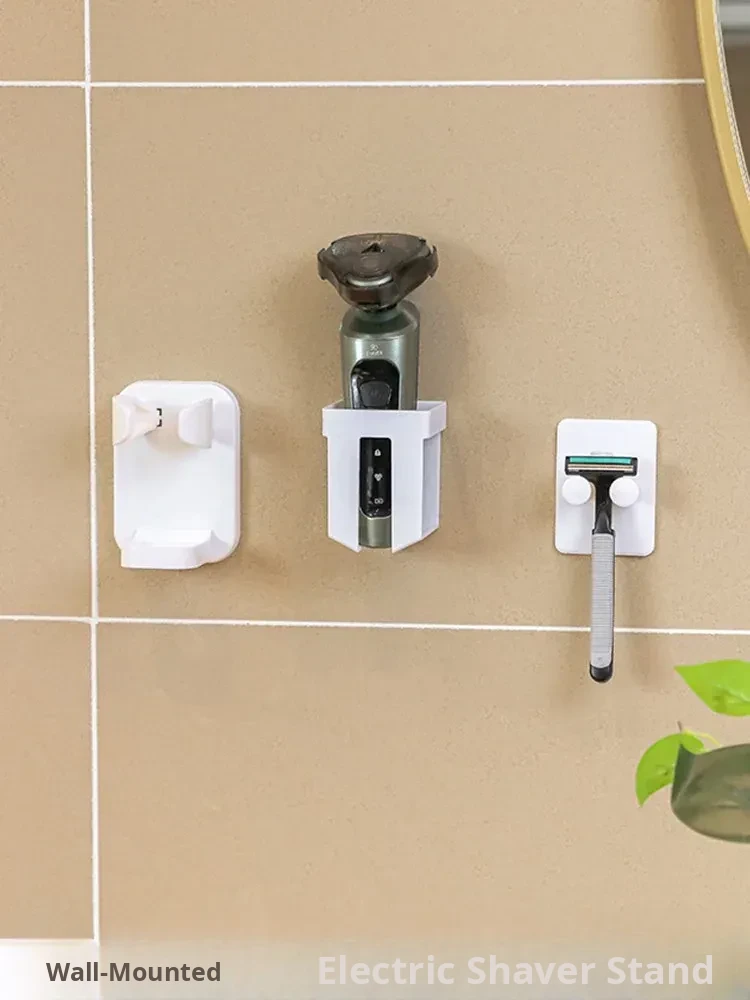 No-Drill Multi-Functional Shaver Stand - Electric Razor Storage Rack for Bathroom - Organizer for Shaving Razors and Accessories
