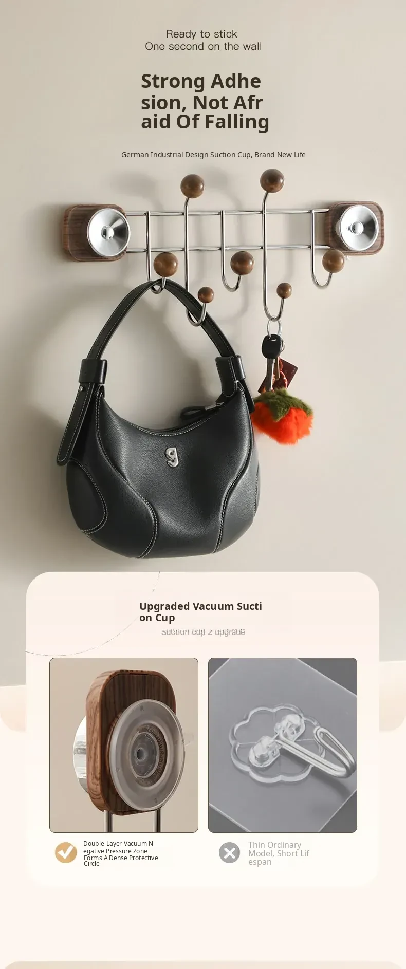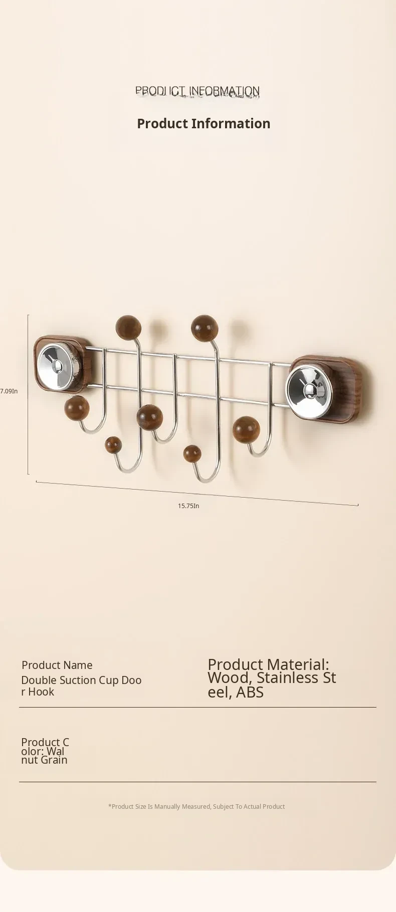 Suction Cup Wood Grain Door Back Hook
