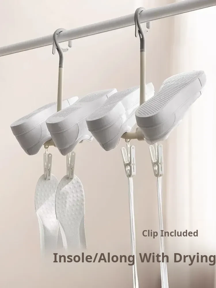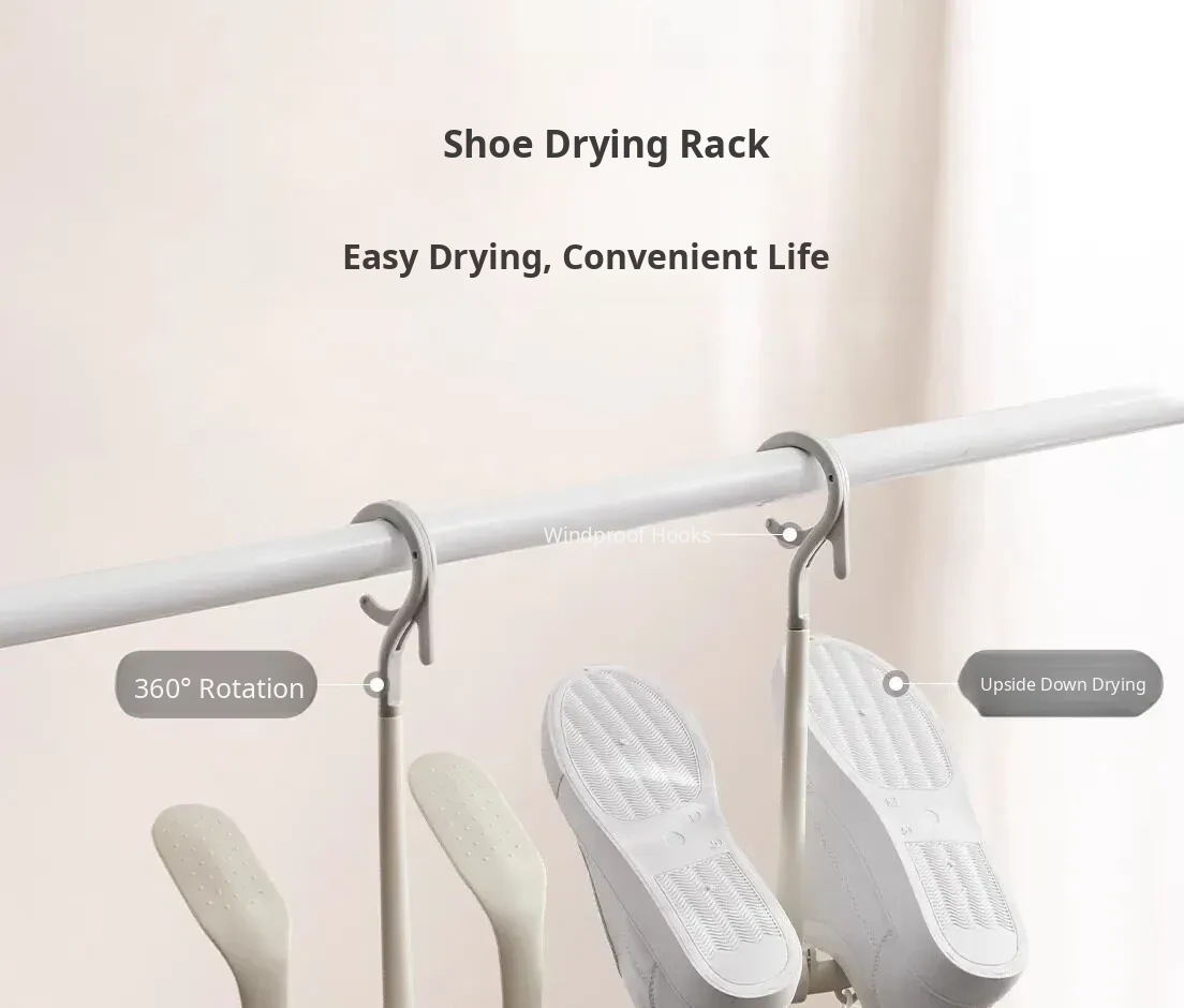 Outdoor Shoe Drying Rack - Simple and Windproof, Perfect for Balconies and Home Use, Multi-Functional Storage with Hooks for Easy Hanging.