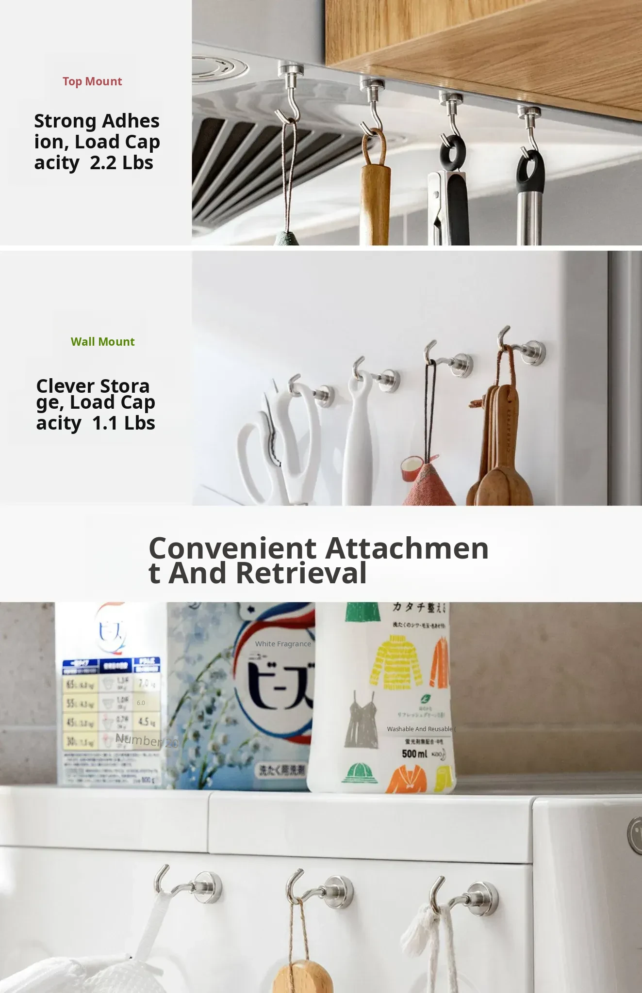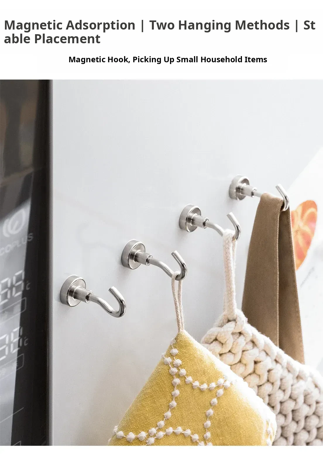 Powerful Magnetic Refrigerator Hooks - No Damage, No Drilling Required, Strong Adhesive Round Magnets for Easy Hanging and Organization