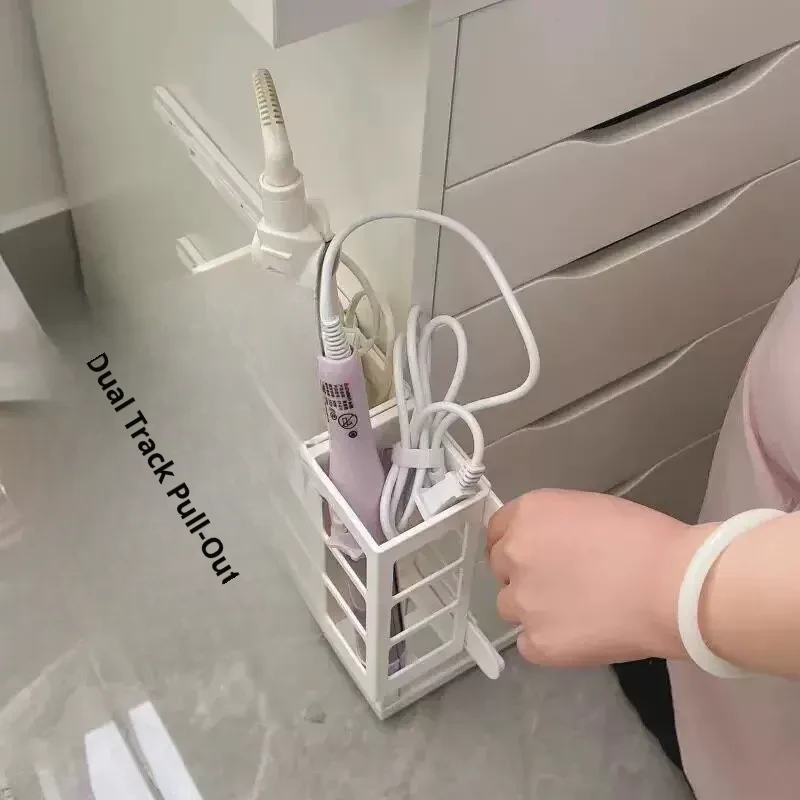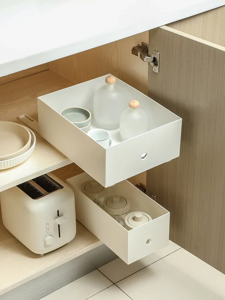 Pull-Out Storage Box with Adhesive Sliding Track - No Drilling Required, Easy Installation, Durable Plastic Organizer for Convenient Access and Efficient Space Utilization