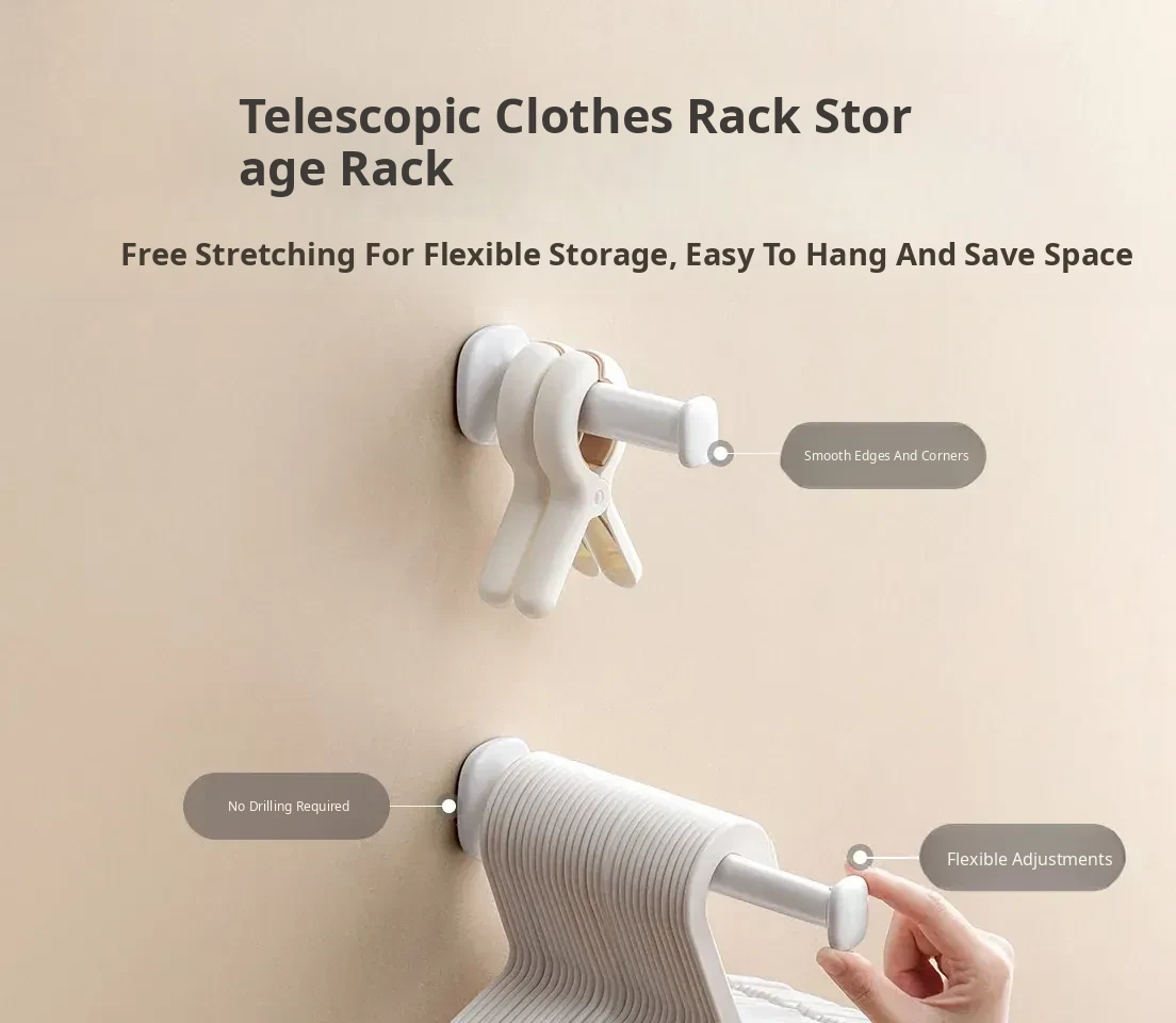Retractable Wall-Mounted Clothes Drying Rack - No Drilling Required, Perfect for Home and Balcony Organization with Hooks for Easy Storage