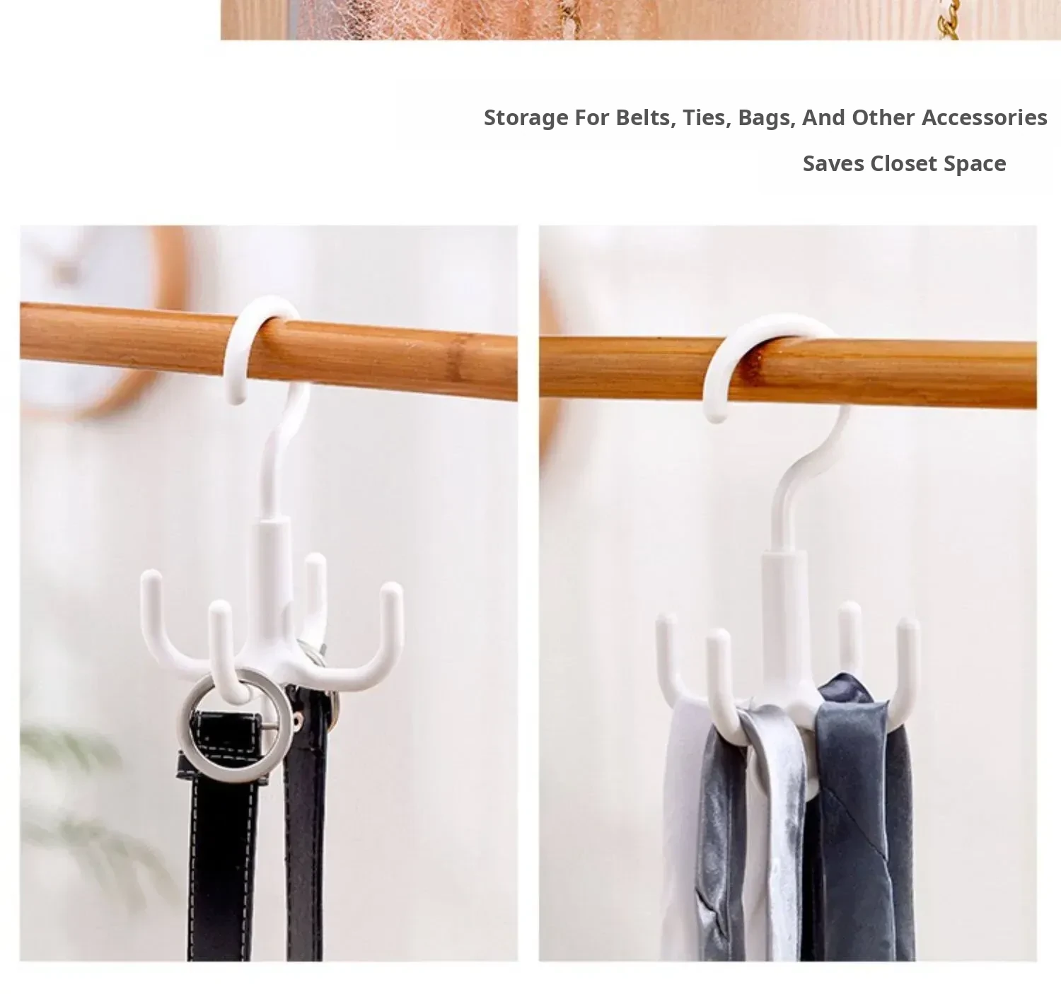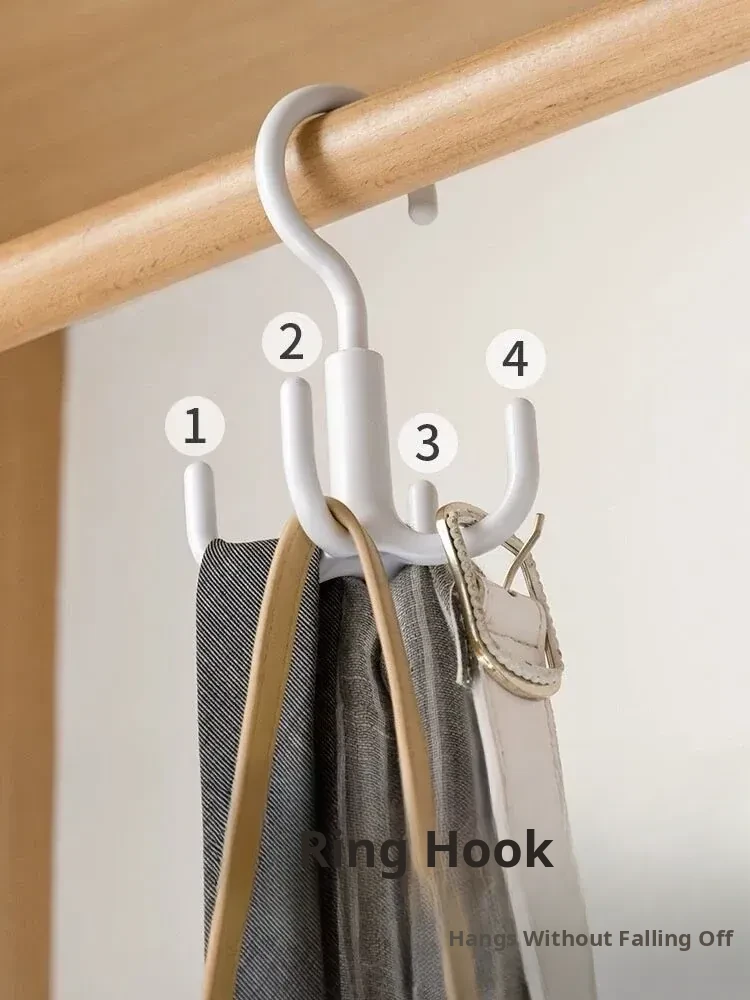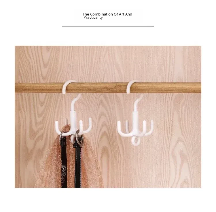 Rotating No-Drill Clothes Hanger Hook with Four-Claw Design - Versatile Scarf Storage and Organizer, Perfect for Home Use and Saving Space!