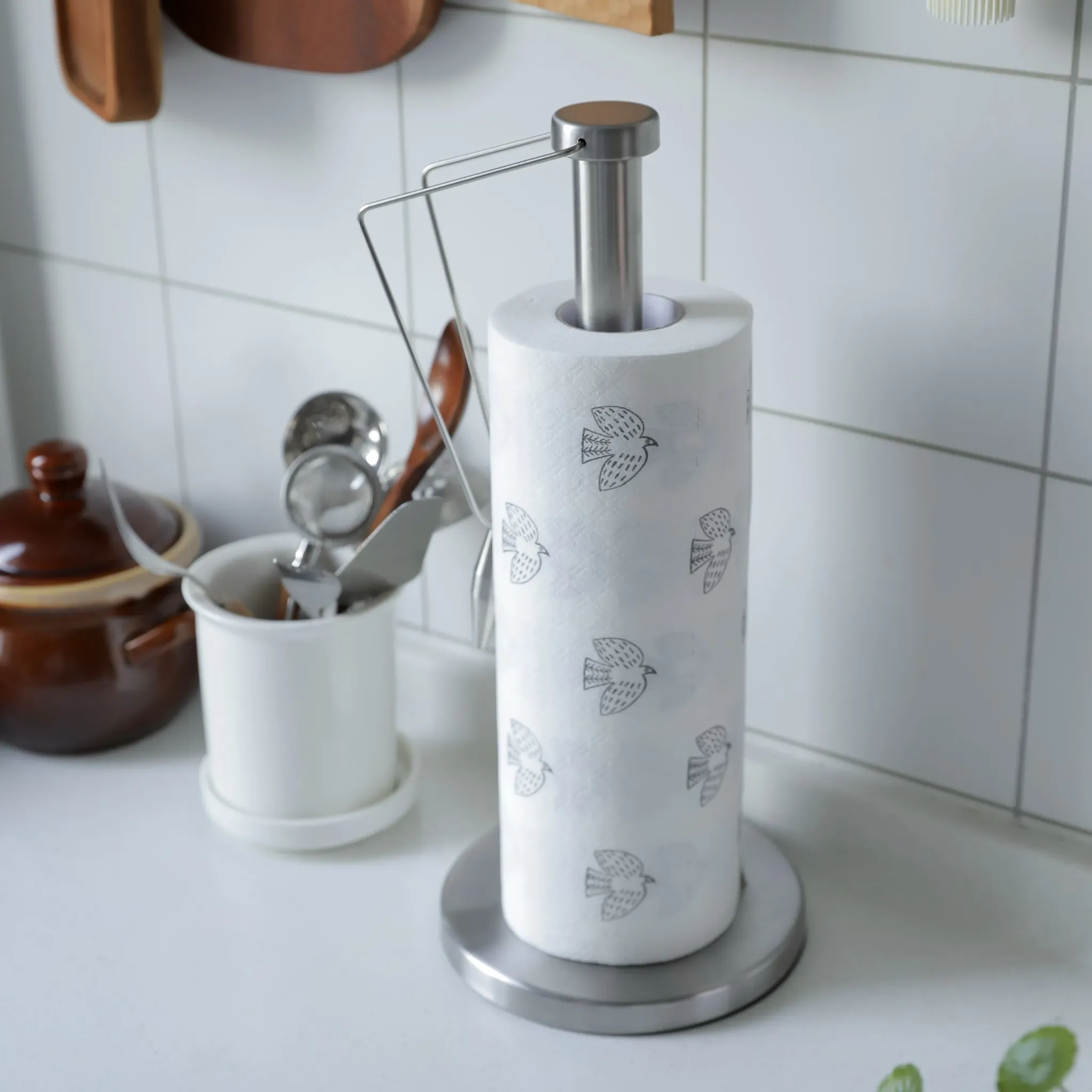 Stainless Steel Paper Towel Holder for Kitchen - Large Roll, No Drilling Needed, Disposable Cloth Organizer, Perfect for Plastic Wrap Storage - Keep Your Countertop Neat and Stylish!