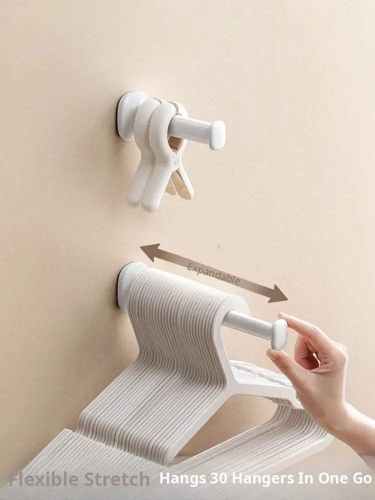 Wall-Mounted Adjustable Clothes Hanger Rack - No Drilling Required, Perfect for Home and Balcony Organization with Hooks for Efficient Drying and Storage