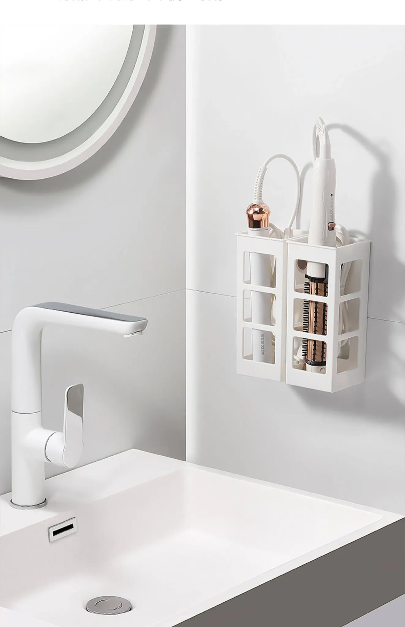 Wall-Mounted Curling Iron Holder - Stylish Storage Solution for Hair Tools, No Drilling Required, Perfect for Bathroom Organization and Space Saving