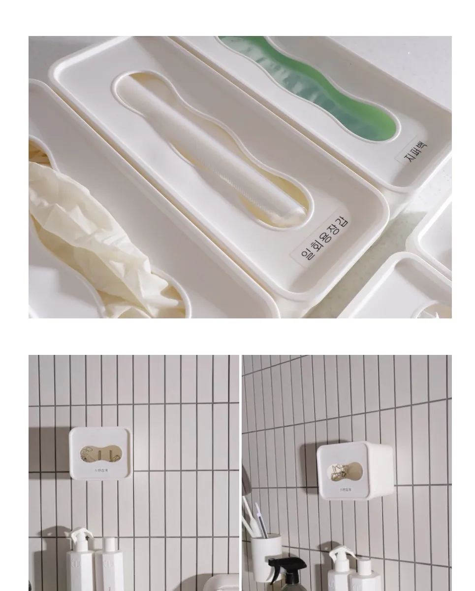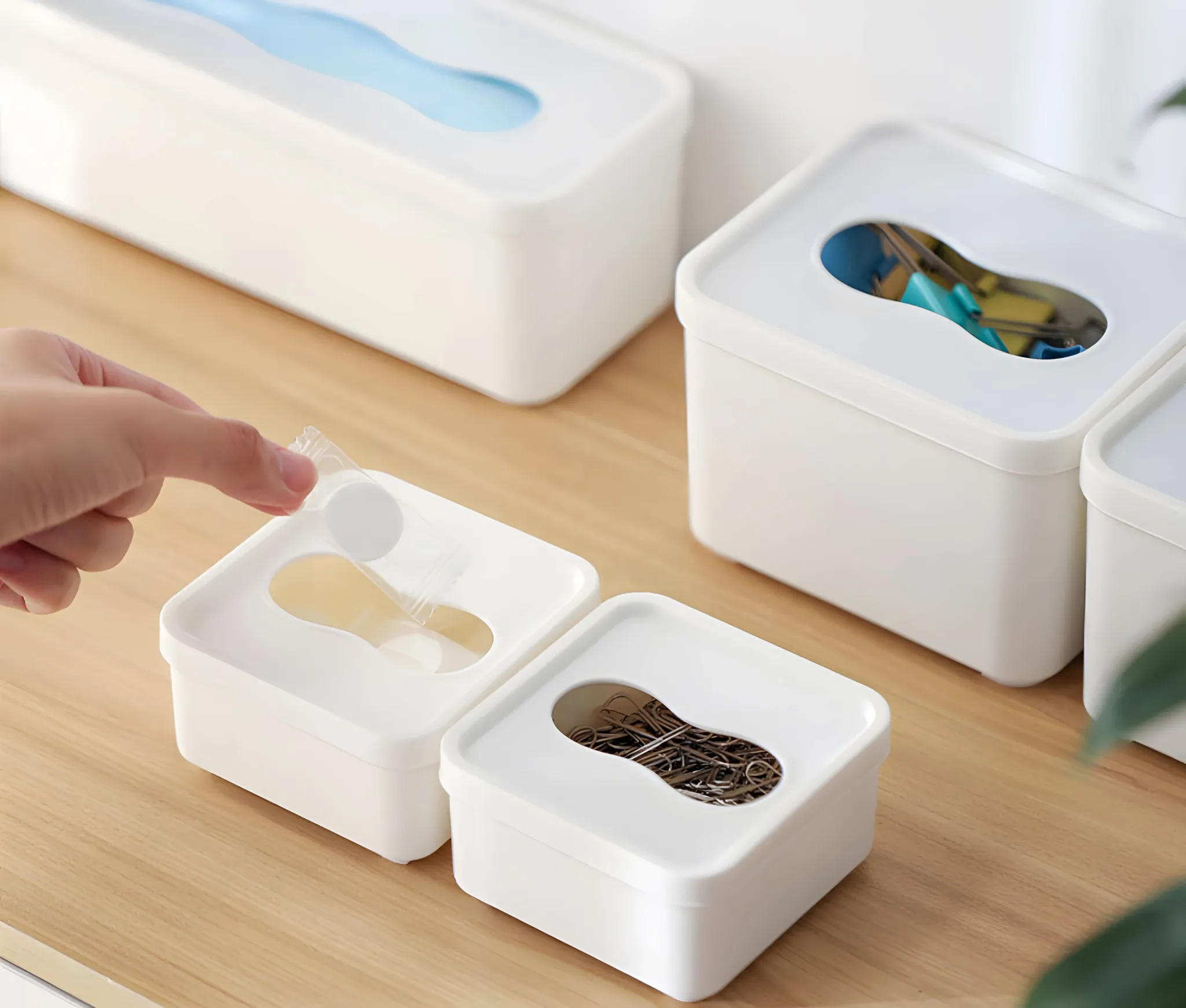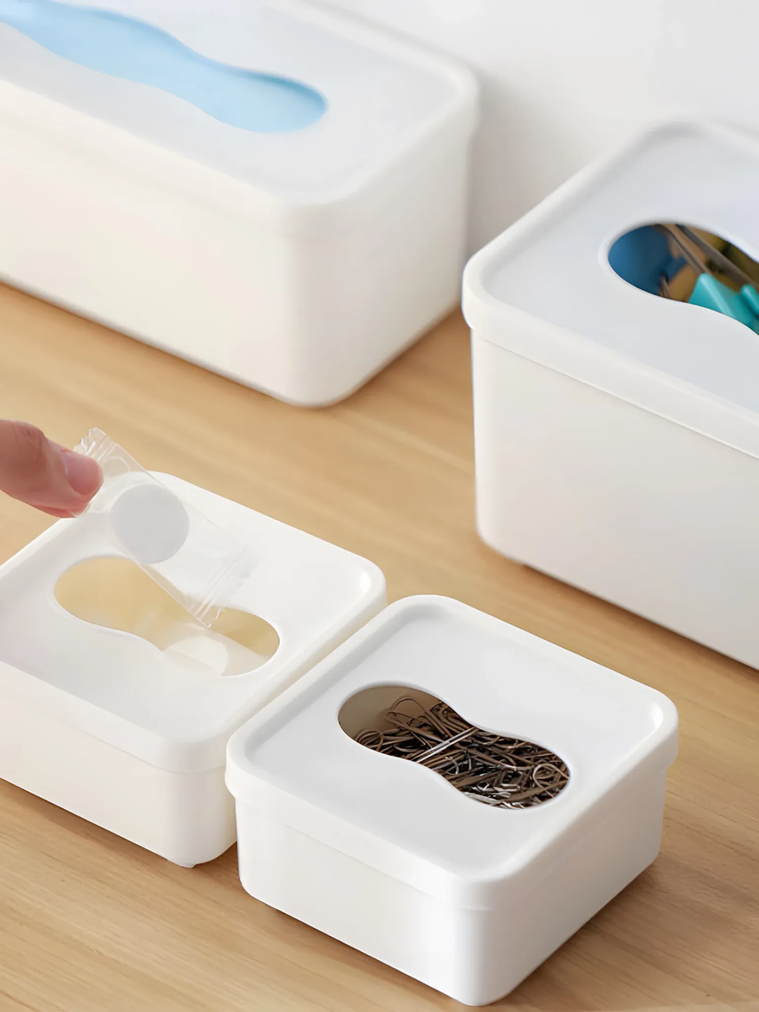 Wall-Mounted Storage Box with Lid - No Drill, Convenient Organizer for Kitchen and Bathroom, Ideal for Desktop and Drawer Storage Solutions