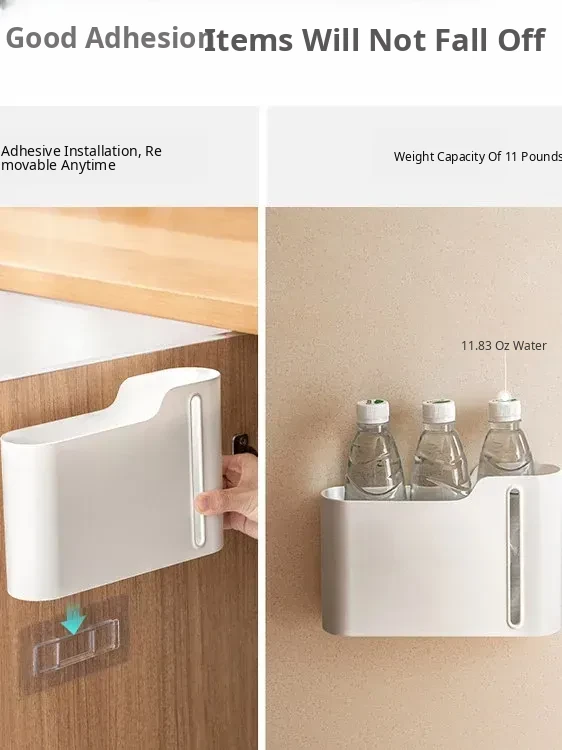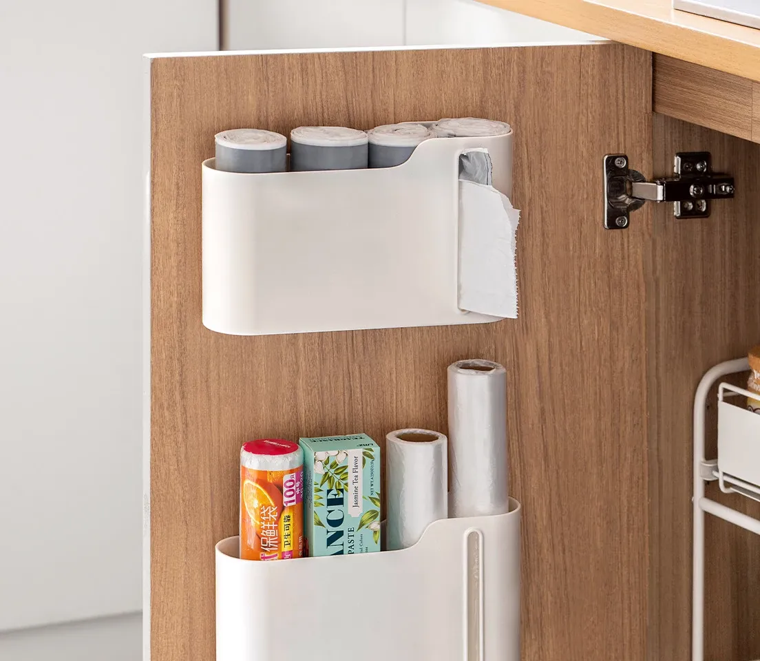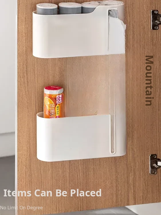 Wall-Mounted Trash Bag Storage Box - Kitchen Cabinet Pull-Out Organizer for Plastic Bags and Food Wraps, Space-Saving Shelf for Home Use