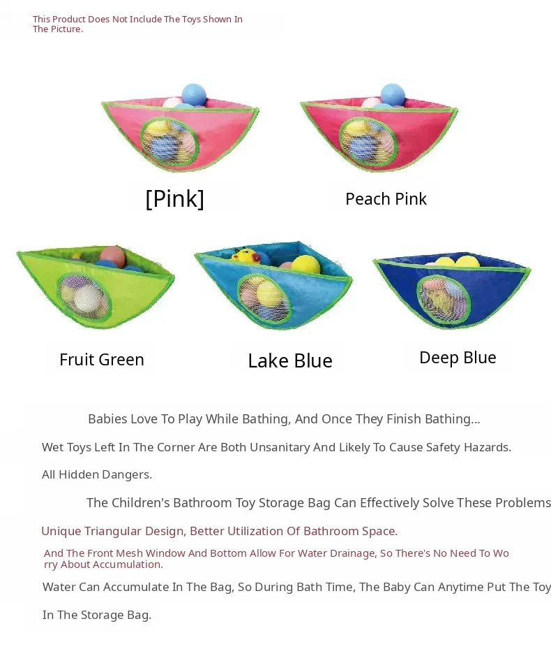 Waterproof Oxford Fabric Bath Toy Storage Hanging Pocket for Kids - Triangular Wall-Mounted Organizer for Baby Bath Time Essentials