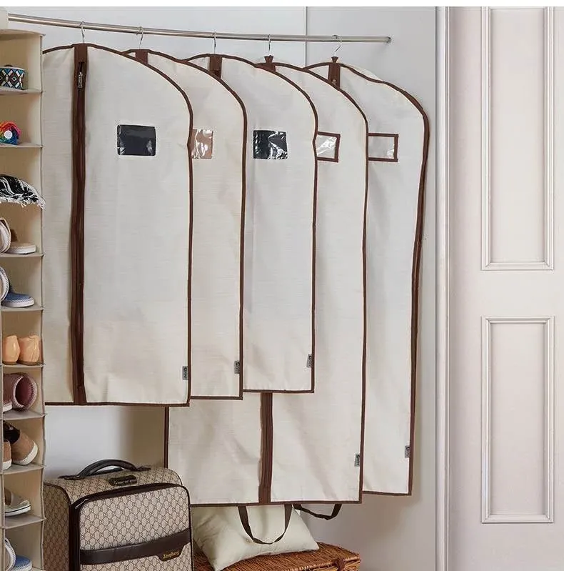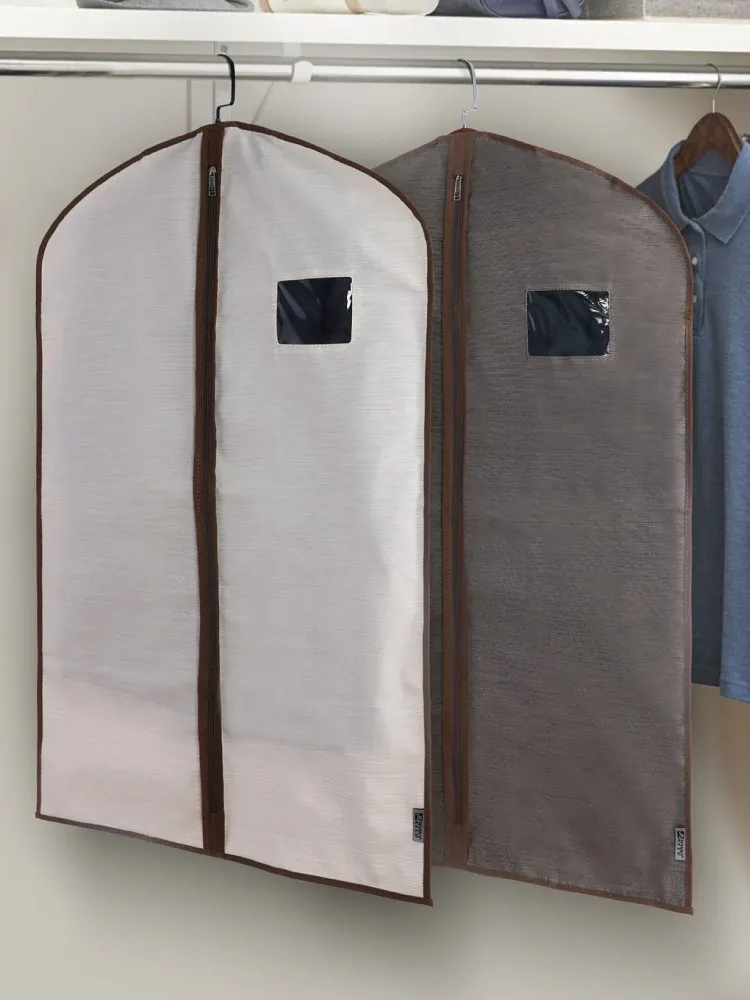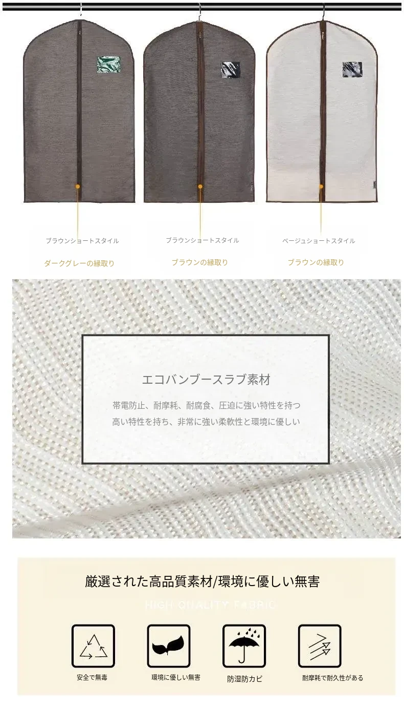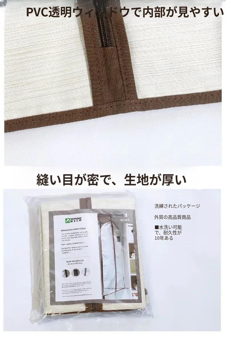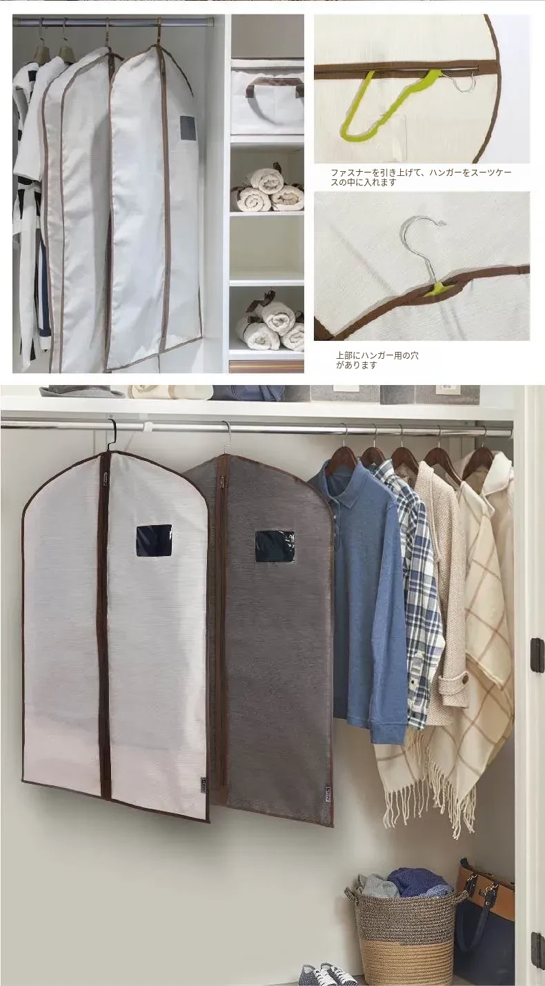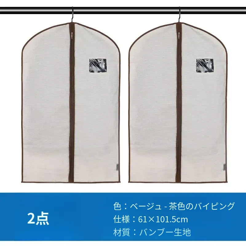 2点セット 衣類収納カバー 防塵カバー 婚礼ドレスやコート、スーツに最適!お部屋をスッキリさせるおしゃれな掛け式収納袋 衣類ハンガー用 防塵袋