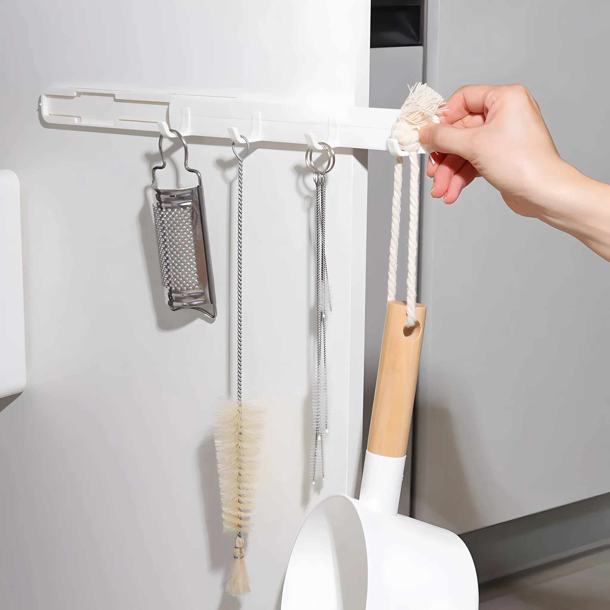 隙間にぴったり!穴を開けずに取り付け可能なキッチン用伸縮フック。創造的なデザインで、サイドに貼るだけで小物をスッキリ整理。多機能で使いやすい、あなたの生活を便利にするアイテムです!