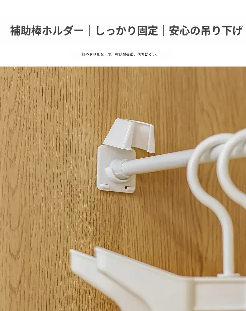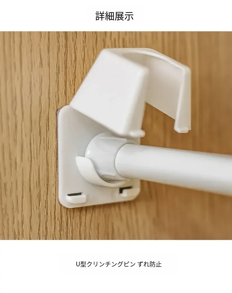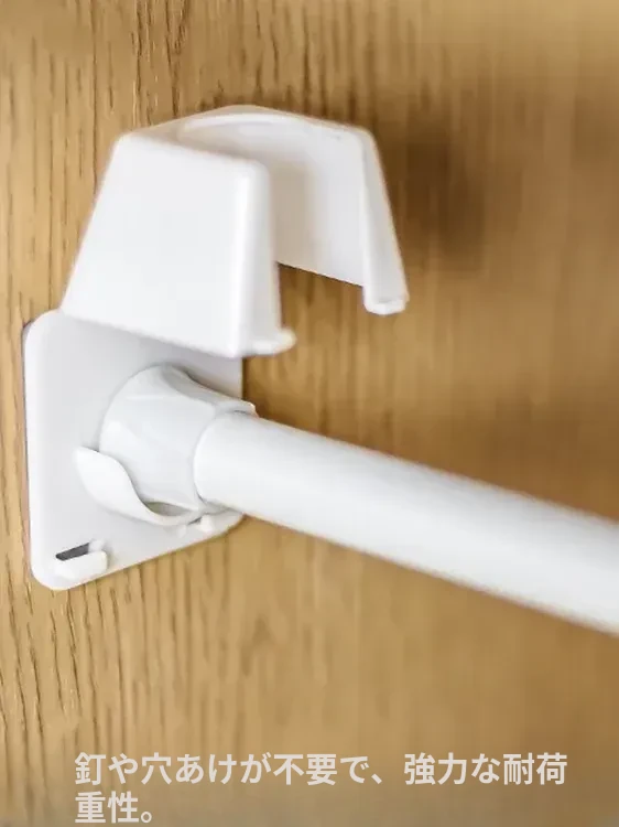 伸縮ロッド用フック付きサポート!直径1.3cm以下のロッドをしっかり固定。安定感抜群で、様々なシーンで大活躍!