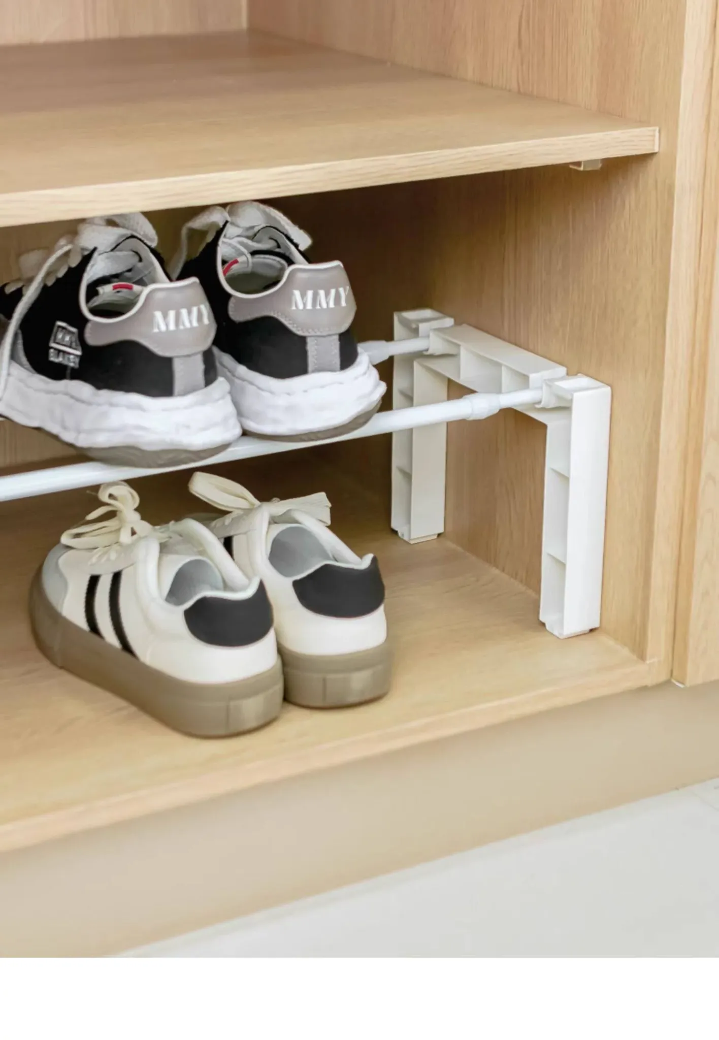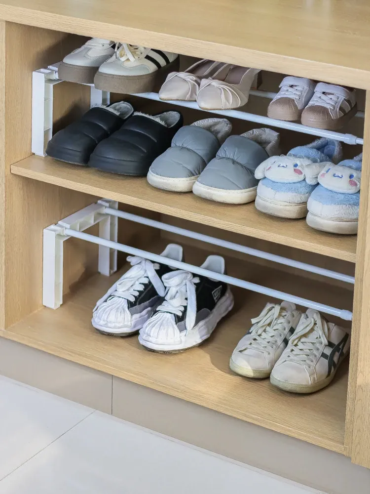 省スペース!調整可能な伸縮式シューズスタンド - 室内での靴の整理に最適な便利アイテム!簡単に使えるシューズラックで、靴箱もスッキリ!