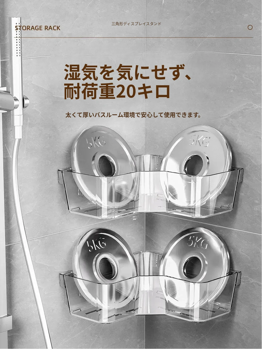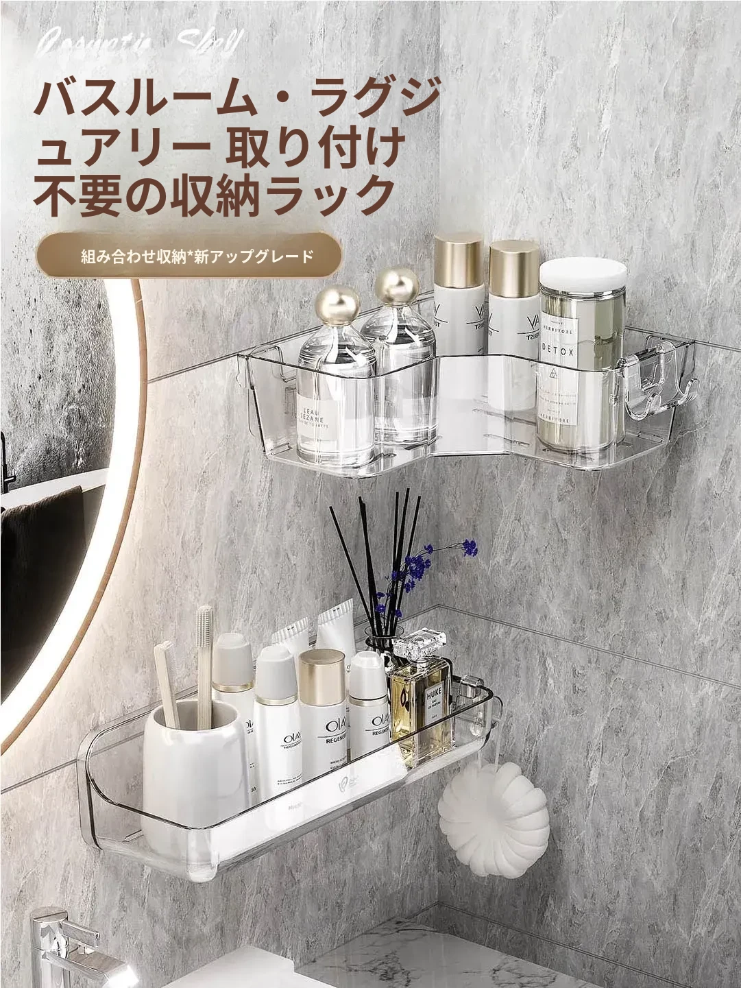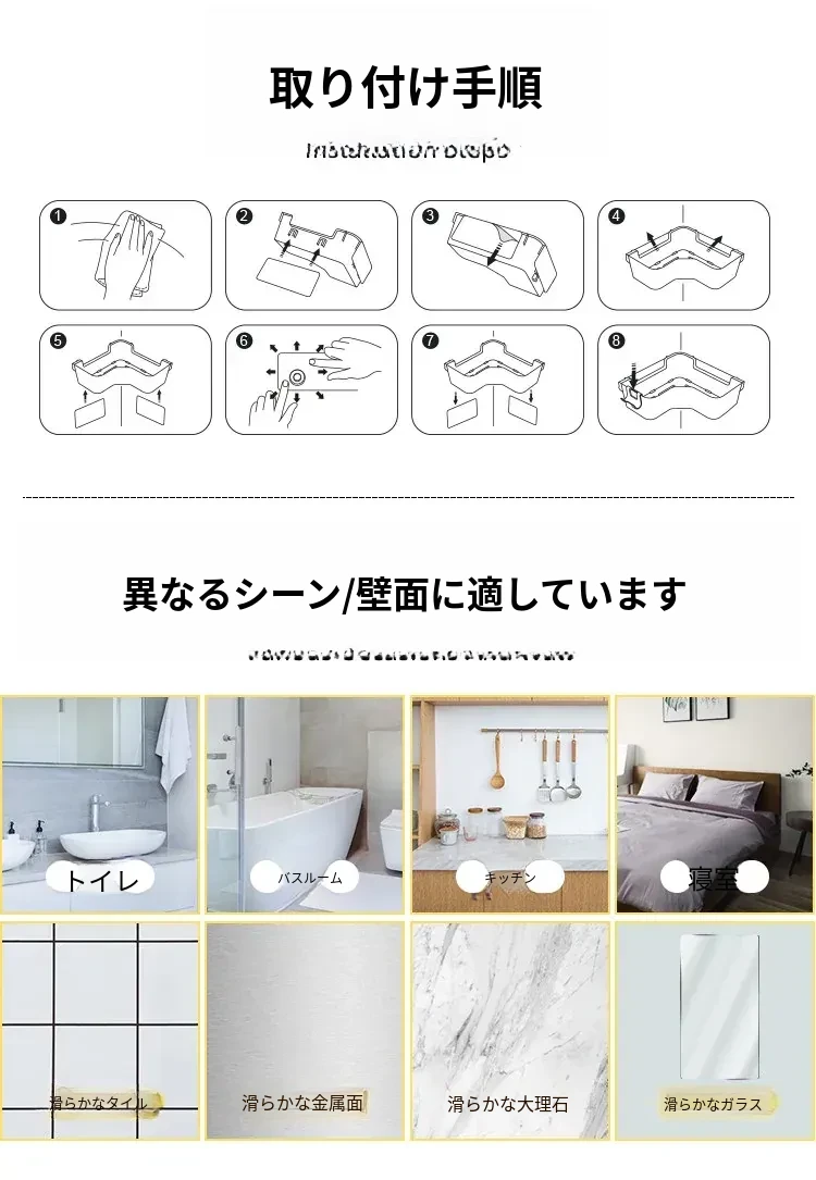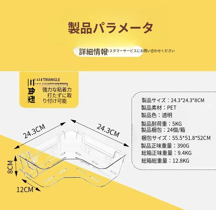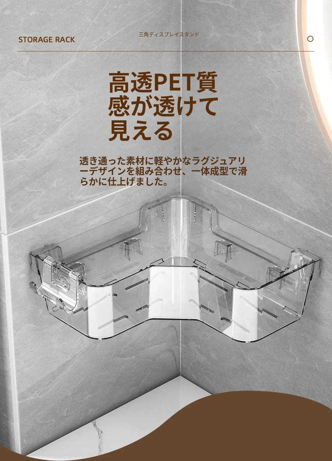 トイレ用コーナー収納ラック|三角形デザインで化粧品や小物をスッキリ整理!壁掛け式&穴あけ不要で簡単取り付け。美しいバスルームを実現しましょう!