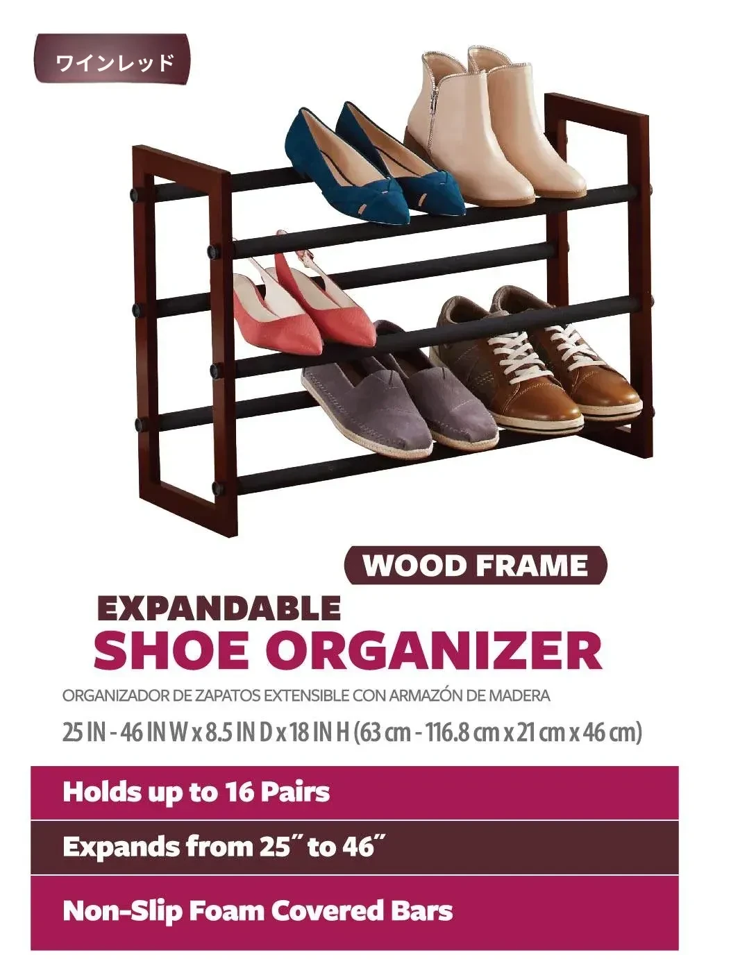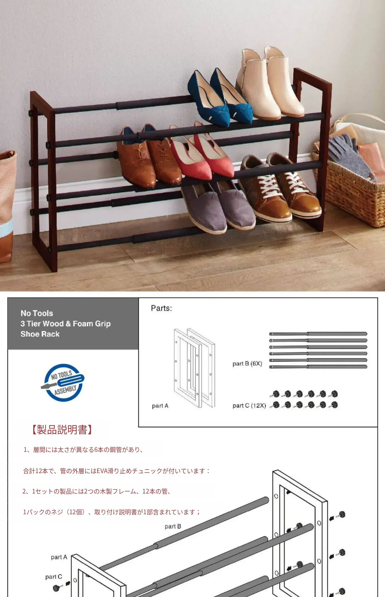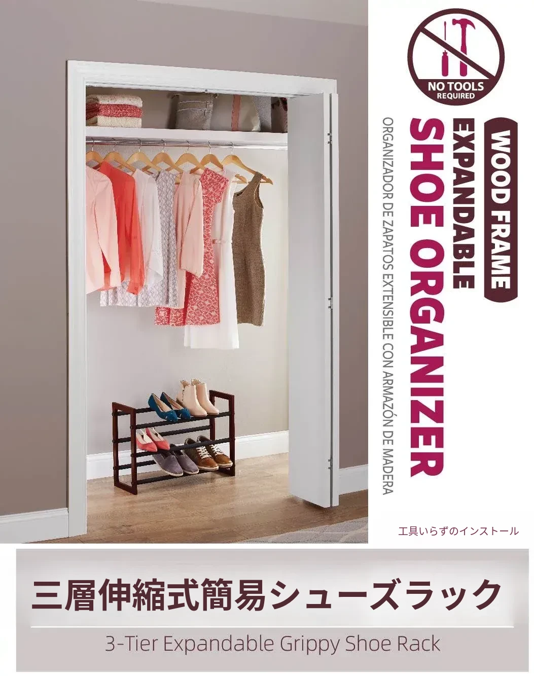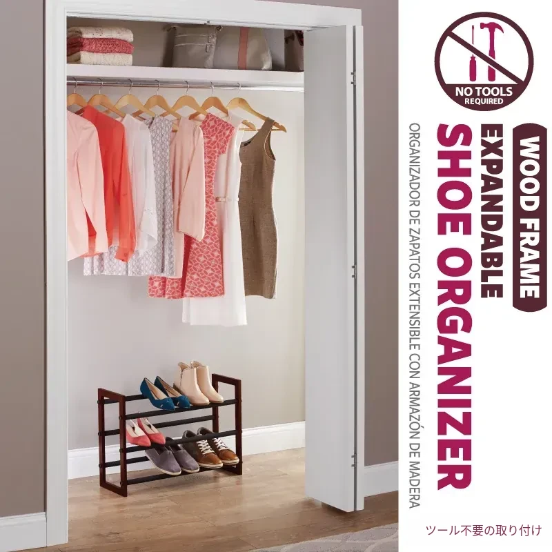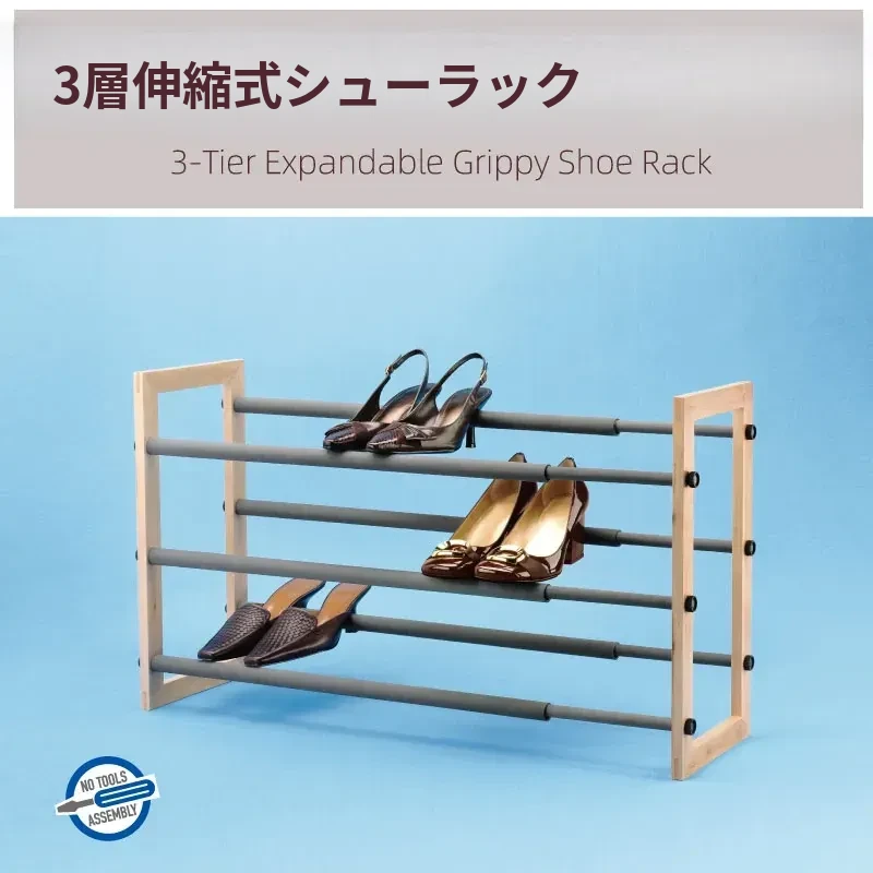 アイデア満載の伸縮式シューラック!家庭用・多機能の3段ワイドデザインで、男女兼用の靴をすっきり収納。リビングにもぴったりのシンプルな靴置き架です。整理整頓でお部屋をスッキリ!