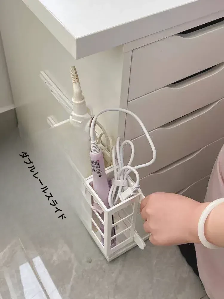 ヘアアイロン収納ラック 引き出し式レール付き メイク台下壁掛け 直毛アイロン整理ボックスの必須アイテム!美しくスッキリした空間を実現し、毎日のスタイリングをもっと楽に!