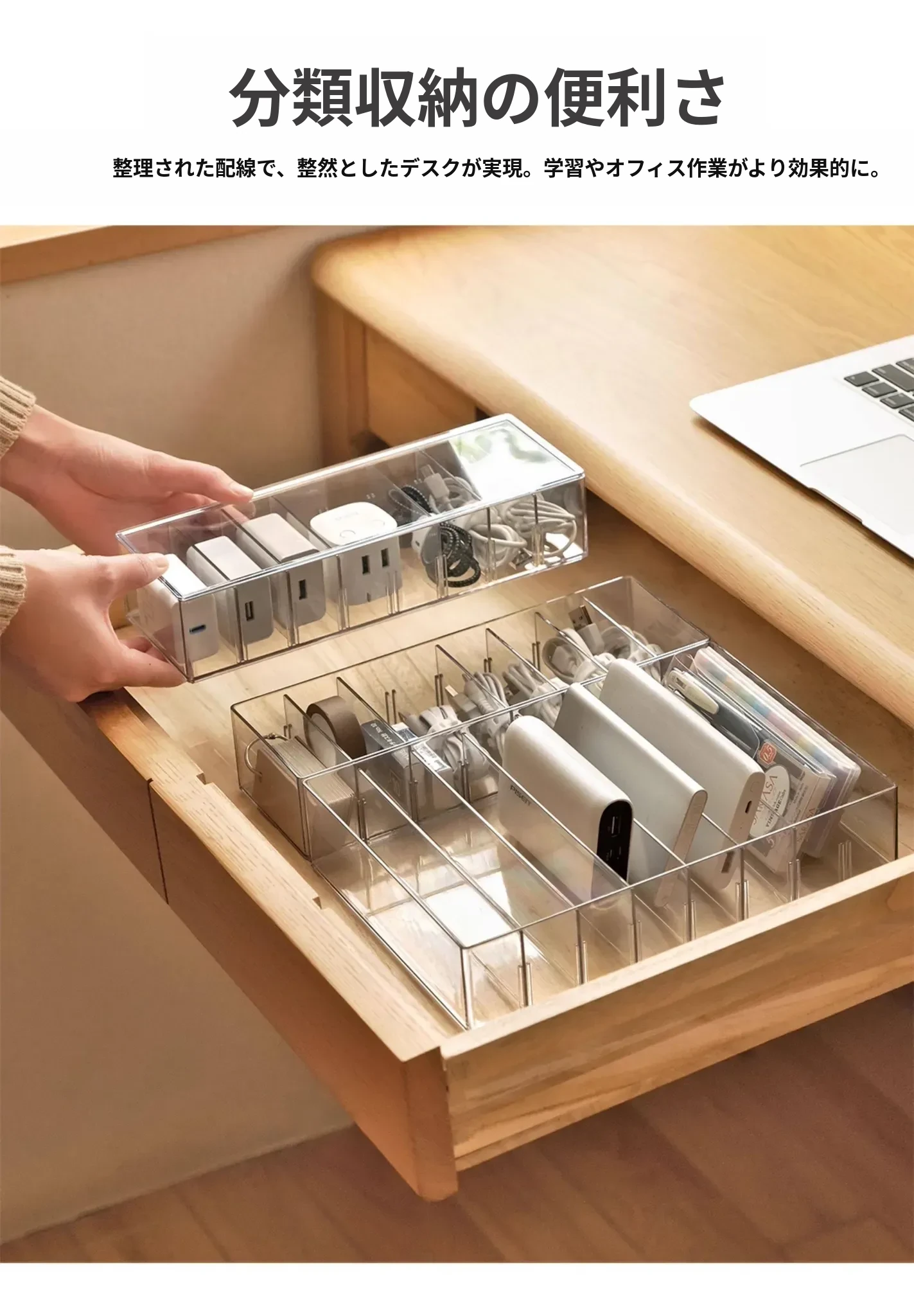 デスク上の整理整頓!スマホ充電ケーブル・電源コード・イヤフォンケーブルをすっきり収納できるケーブル巻き取りボックス。煩わしい絡まりを解消し、スタイリッシュなデスク環境を実現!